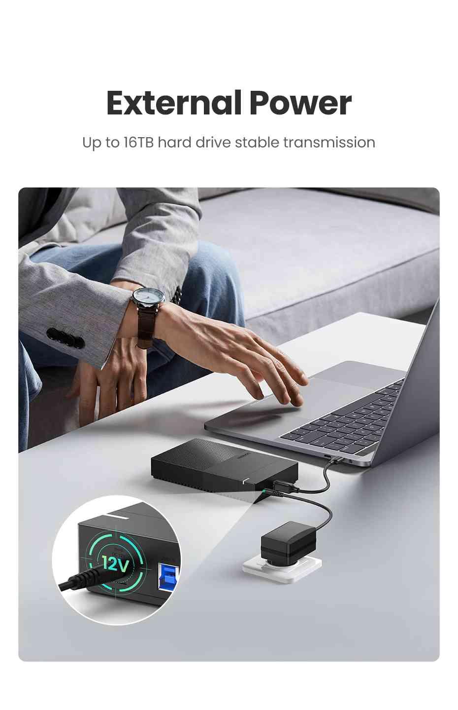 1. Interfaces: SATA III to USB 3.0 B 2. Transfer Speed: 5Gbps 3. Max HDD Capacity: 2 x 12TB