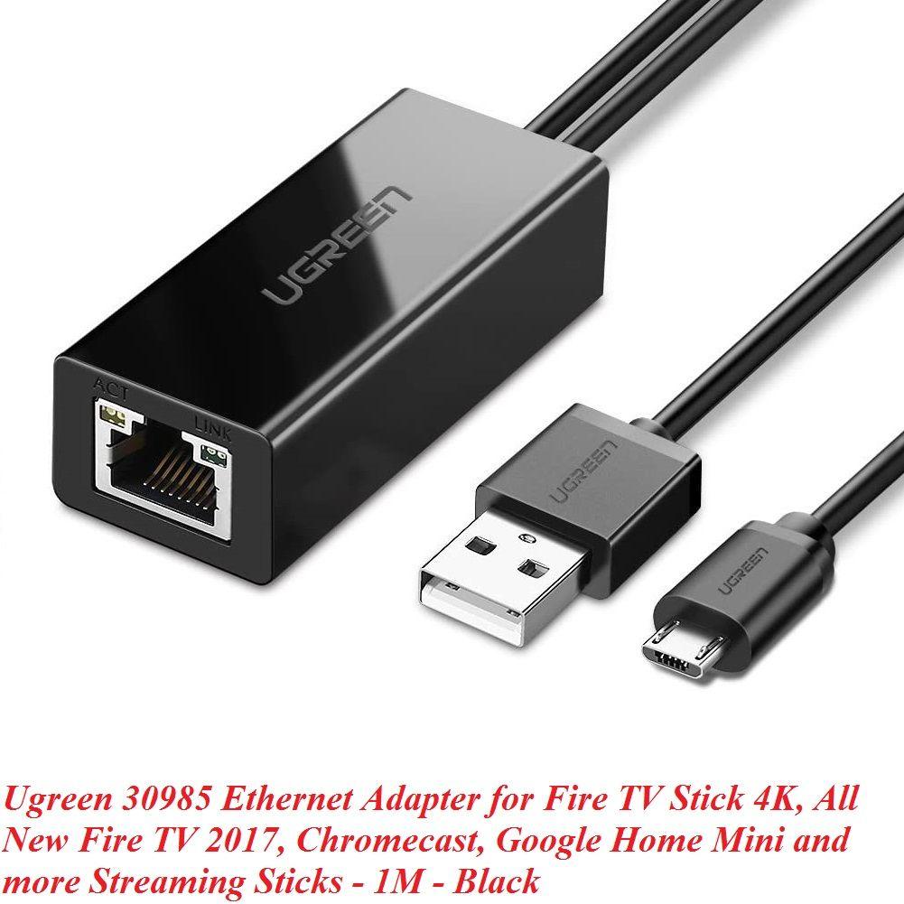 ✨Ugreen UG3098530985TK 1M màu đen card mạng usb có thêm cổng micro dùng cho Fire TV Stick 4K All New Fire TV 2017 Chromecast Google Home Mini - HÀNG CHÍNH HÃNG