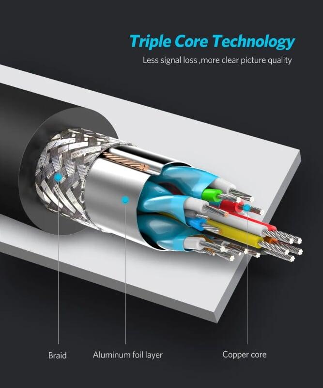 1. 0.5m-2m 30AWG 8K/60Hz OD7.0mm 2. 3m 28AWG 8K/60Hz OD7.3mm 3. 8K@60Hz, 8K@50Hz 4. 4K@120Hz, 4K@100Hz,1080P 5. This 8K HDMI cable support latest HDR (Like Dolby Vision HDR and HDR 10+), Dolby TrueHD Master Audio,