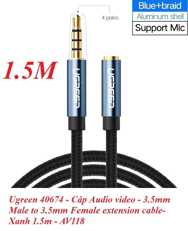 ✨Ugreen UG40674AV118TK 1.5M màu Xanh Cáp âm thanh 3.5mm nối dài đầu nhôm - HÀNG CHÍNH HÃNG