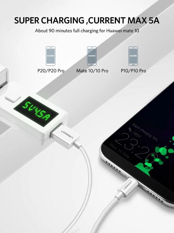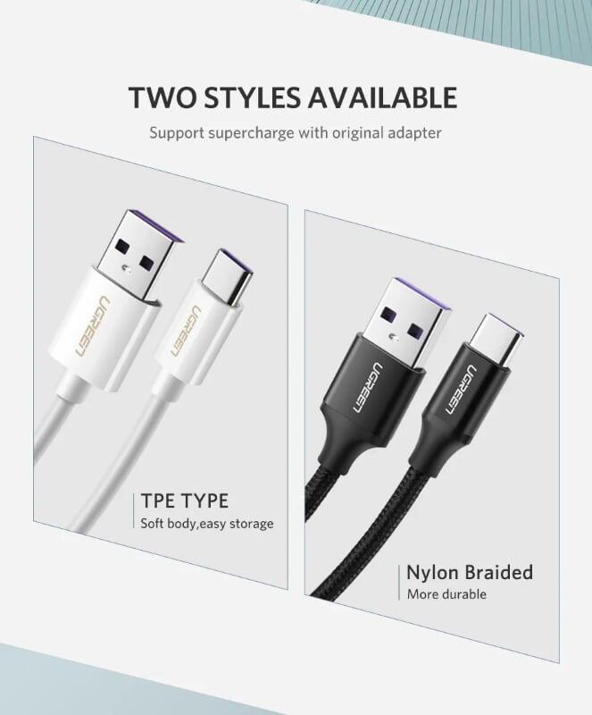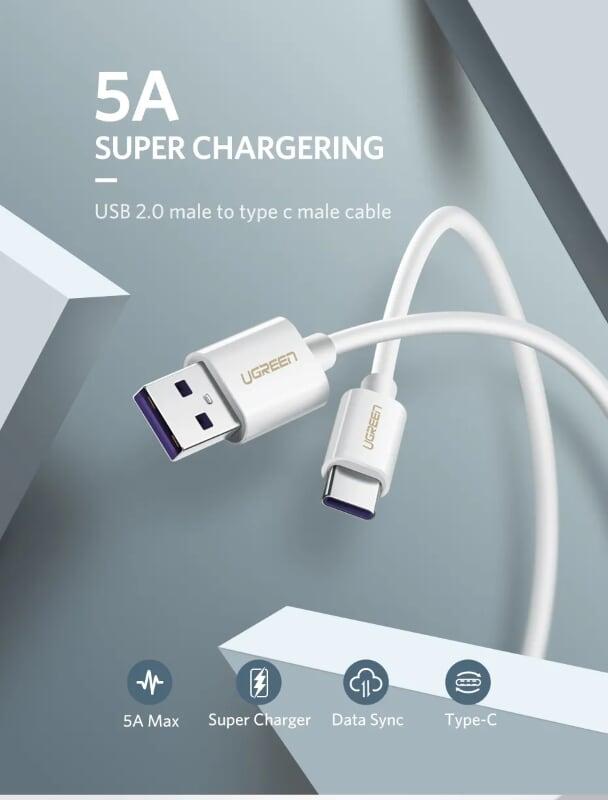✨Ugreen UG40887US253TK 0.5M 5A màu Trắng Dây USB sang USB Type-C vỏ ABS - HÀNG CHÍNH HÃNG