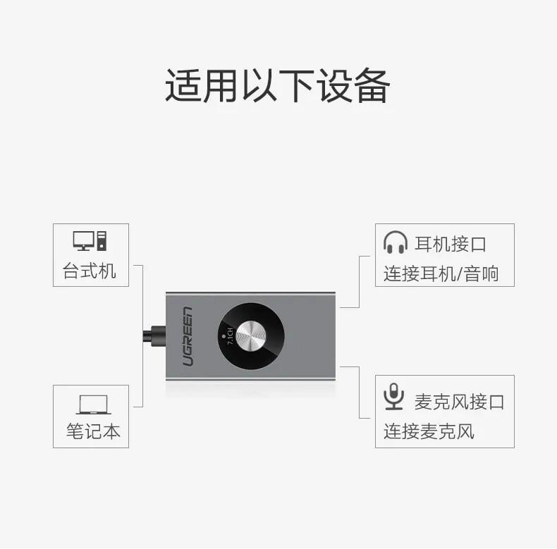Mua tại TiktokUgreen 50711 7.1 channel usb audio adapter gray cm190