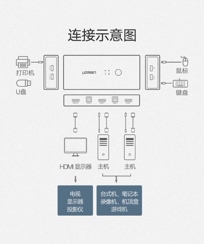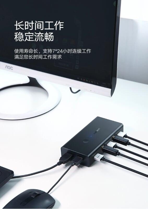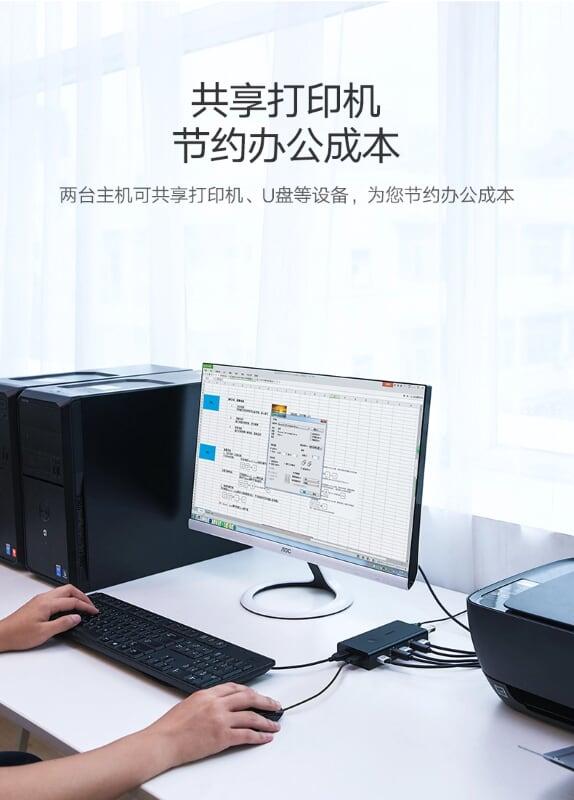 Ugreen 30768 2 in 4 out usb2.0 sharing switch box usb 3.0 us216 1. Two computer can use 4 same USB device simultaneously 2. USB 3.0 3. 280g 4. 25 x 15 x 5 cm