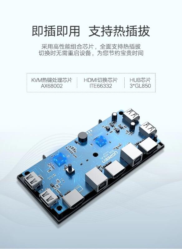 Mua tại TiktokUgreen 50744 hdmi 2x1 kvm switcher 2 port đen cm200