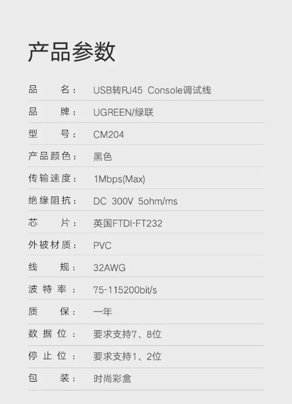 Ugreen 50773 1.5m usb to rj45 console cable black cm204 1. USB to RJ45 Console Cable can connects your computer or laptop's USB port to your modern router firewall switch or other device with a