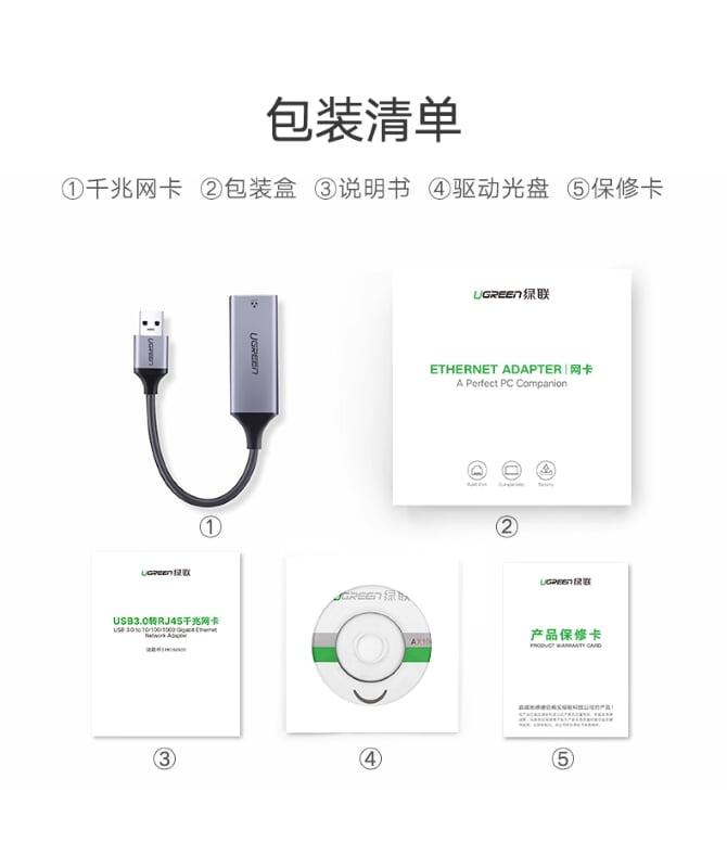 Ugreen 20255 Usb 3.0 To Rj45 Lan Gigabit White Cr111 1. USB3.0 Giga Lan Card 2. Color: White ABS 3. 100g 4. 20 x 15 x 5 cm