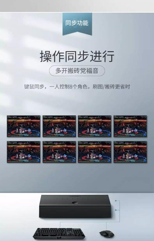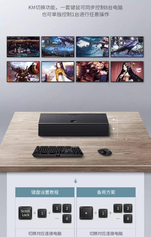 ✨Ugreen UG60102CM229TK màu Đen Bộ chuyển mạch KVM 1 bộ chuột phím điều khiển đồng bộ 8 máy tính - HÀNG CHÍNH HÃNG