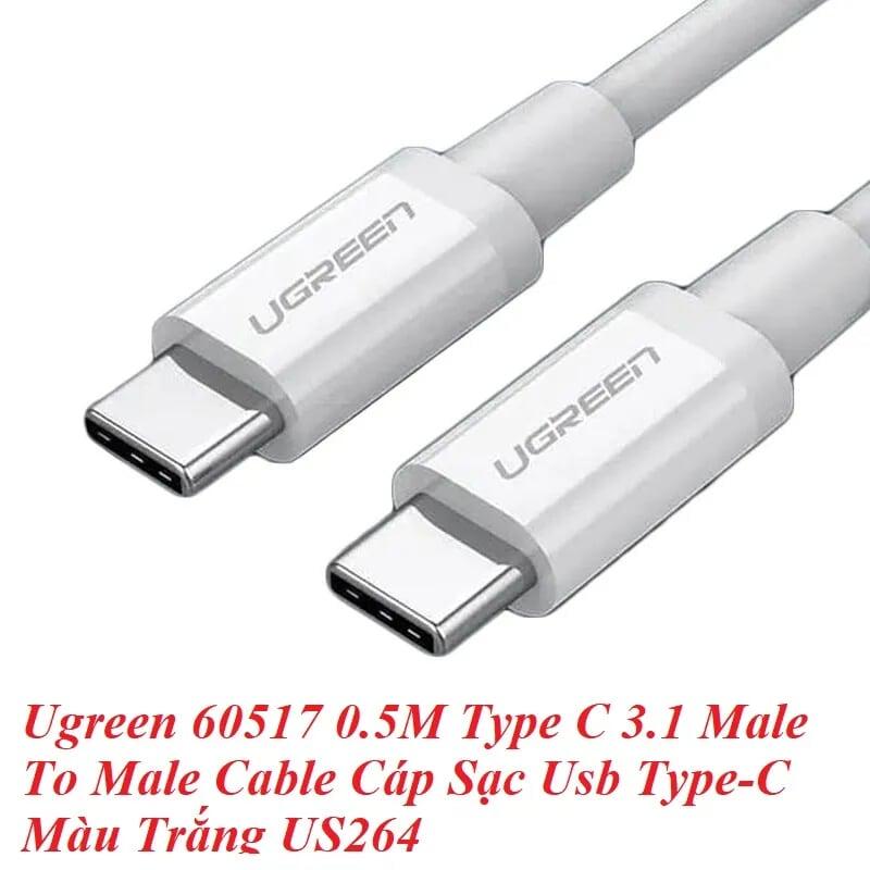 Mua tại TiktokUgreen 60517 0.5M Type C 2.0 Male To Male Cable Cáp Sạc Usb Type C Màu Trắng Us264