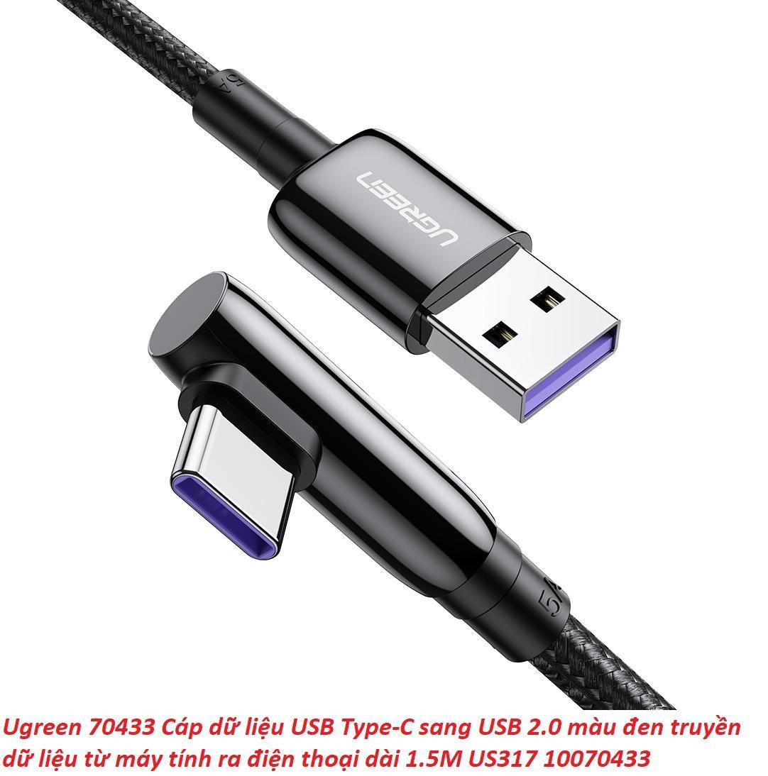 ✨Ugreen UG70433US317TK 1.5M bẻ góc C 90 độ Cáp USB A sang Type-C 2.0 màu đen truyền dữ liệu từ máy tính ra điện thoại - HÀNG CHÍNH HÃNG