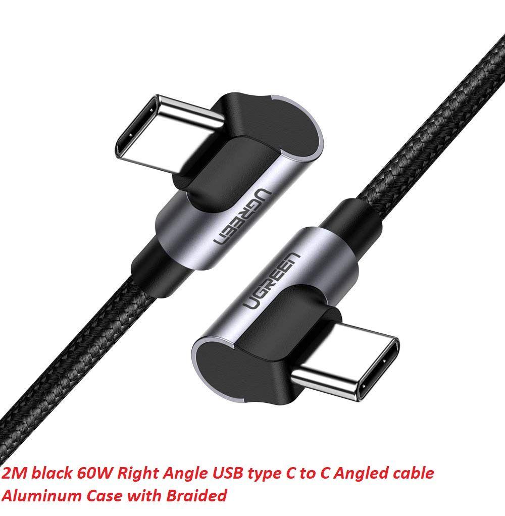 Cáp dữ liệu, sạc nhanh 60W USB 2.0 Type-C to Type-C bẻ góc 2 đầu 90 độ L dài 2M Ugreen 70531 cao cấp