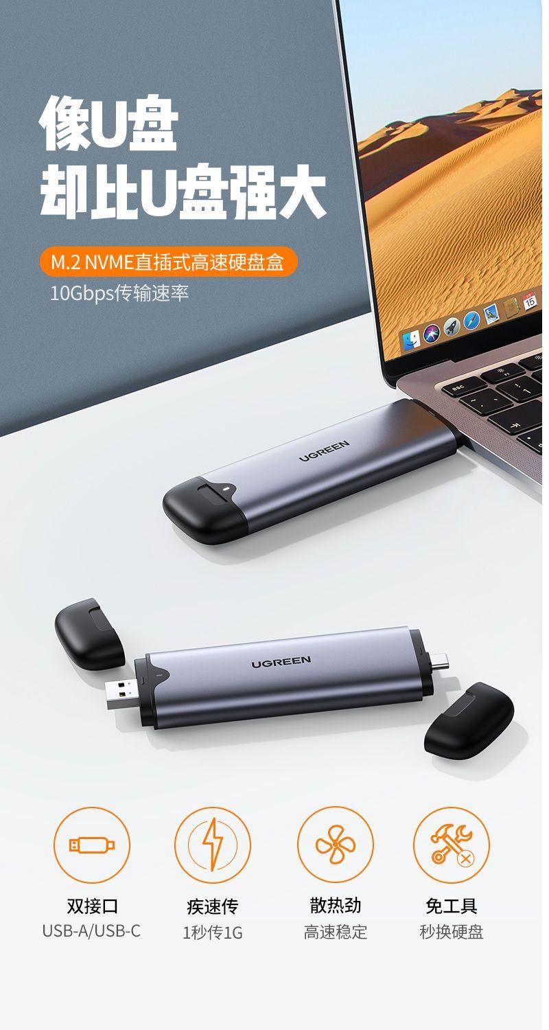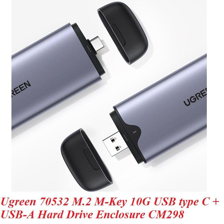 ✨Ugreen UG70532CM298TK M.2 NVME M-Key 10G ra USB type C + USB-A hộp ổ cứng - HÀNG CHÍNH HÃNG