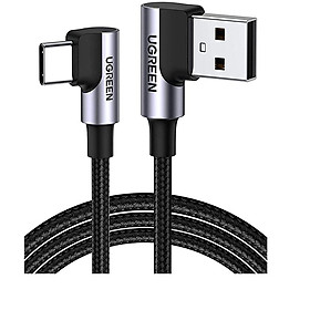 ✨Ugreen UG70875US176TK 3M màu Đen 3A Cáp sạc , truyền dữ liệu USB 2.0 sang USB-C vuông góc 90 độ dây dù - HÀNG CHÍNH HÃNG