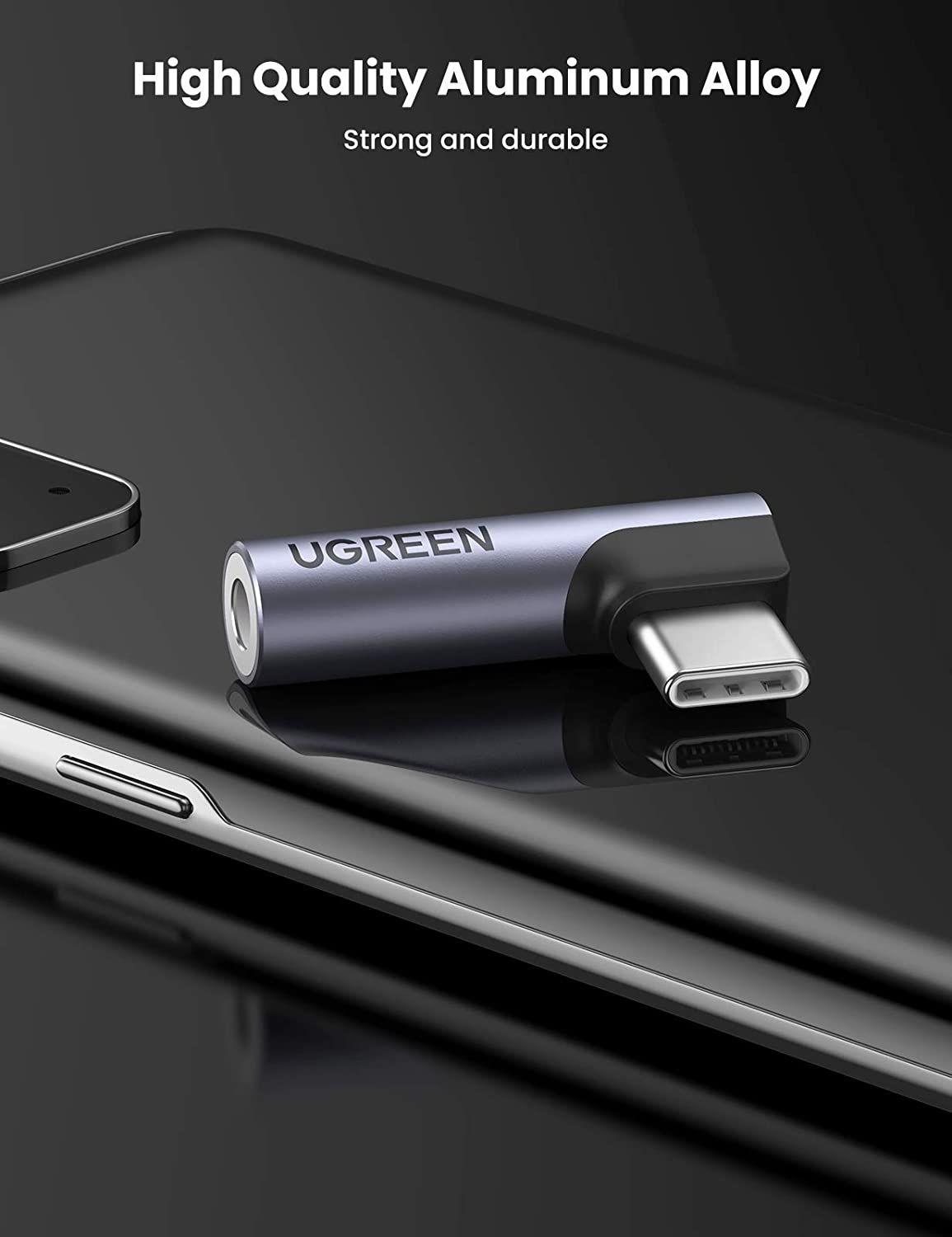 ✨Ugreen UG80384AV154TK Jack chuyển USB type C bẻ góc 90 độ ra 3.5mm Headphone Audio - HÀNG CHÍNH HÃNG