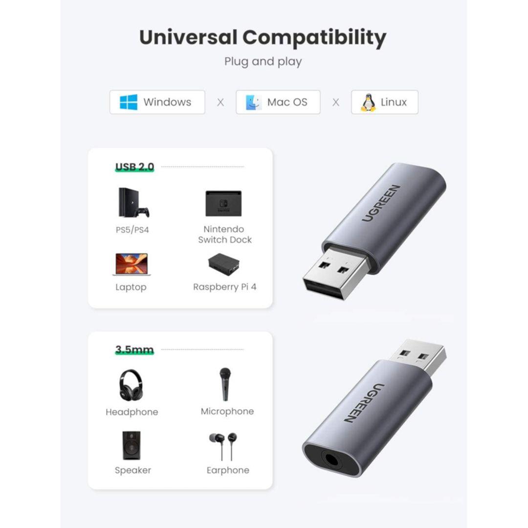 ✨Ugreen UG80864CM383TK Chipset ALC4030 TRRS Màu Xám Cáp chuyển đổi USB 2.0 sang 3.5mm hổ trợ Mic - HÀNG CHÍNH HÃNG