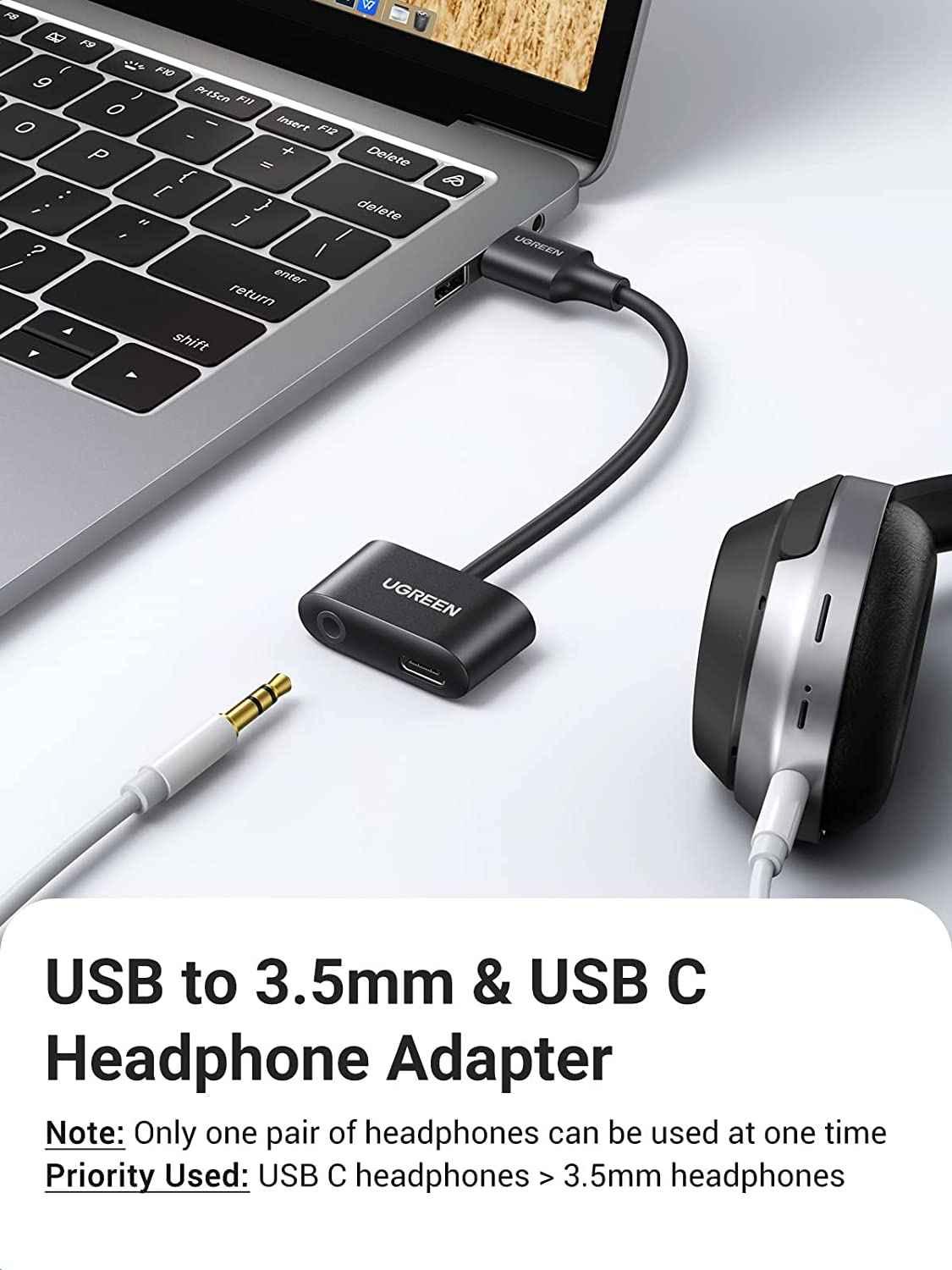 ✨Ugreen UG80897CM397TK 15CM Cáp chuyển đổi USB-A sang USB-C audio + 3.5mm audio Màu Đen - HÀNG CHÍNH HÃNG