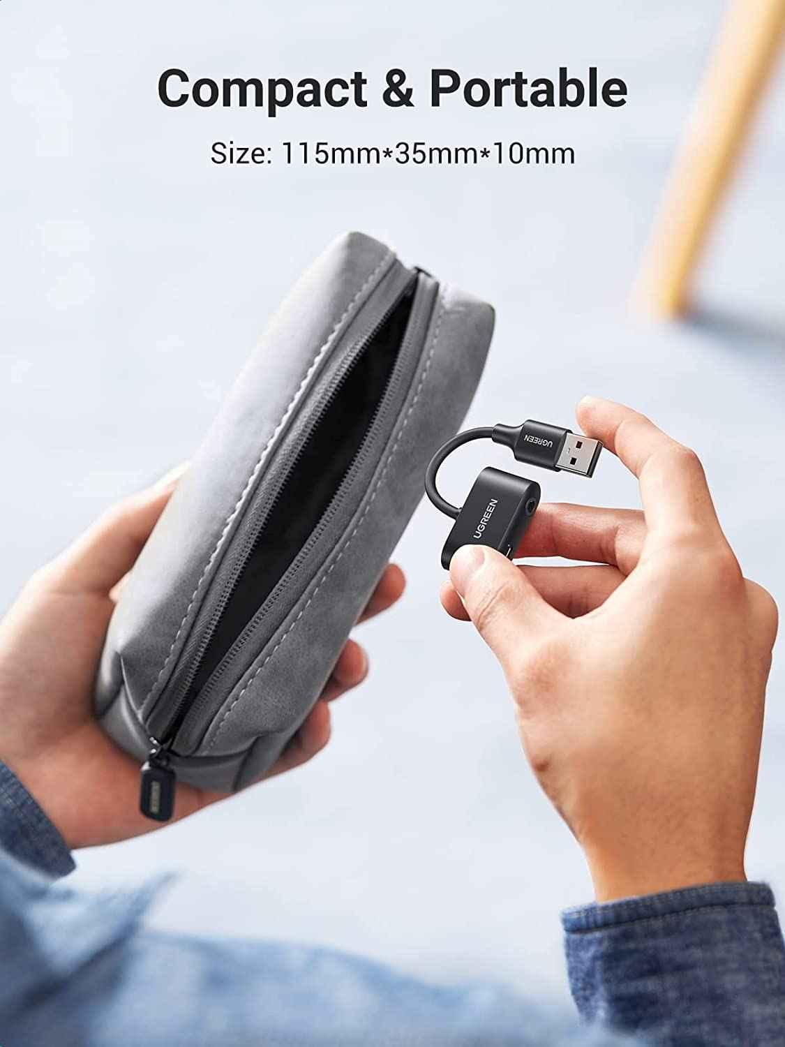 Ugreen 30724 black color usb 2.0 external sound adapter us205 1. Material: PVC+ Tinned Copper 2. Play & plug 3. Nickel plated port 4. OD: 4.0 5. Port: USB2.0 - 3.5mm 6. Color: Black 7.