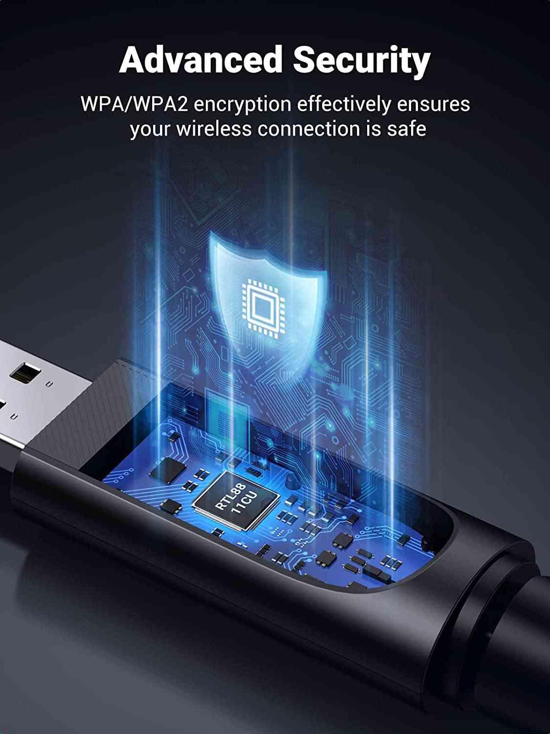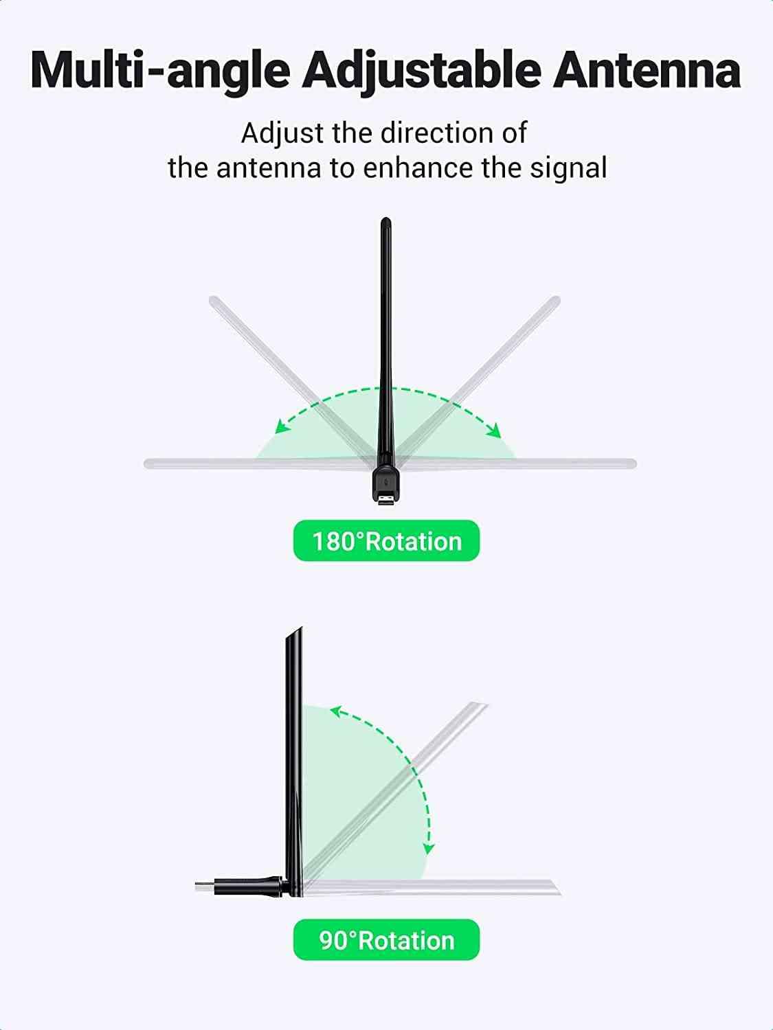 1. Black 2. USB 2.0 interface 3. Support dual band 2.4GHz and 5GHz 4. The speed can reach 433Mbps below 5GHz 5. Win10 systems do not need drivers, plug and play 6. Win7 / 8.1