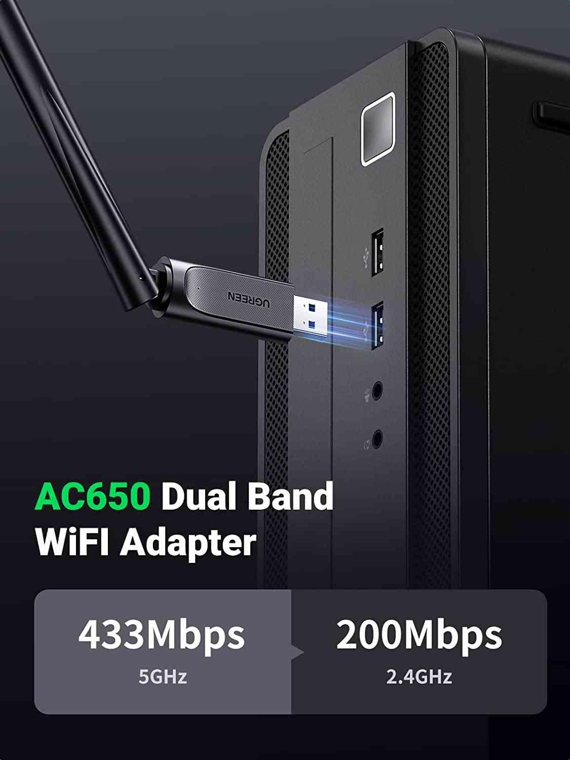 ✨Ugreen UG90339CM496TK AC650 Màu Đen USB wifi dành cho laptop , PC có ăngten 6dBi hổ trợ chuẩn 2.4Ghz và 5Ghz - HÀNG CHÍNH HÃNG