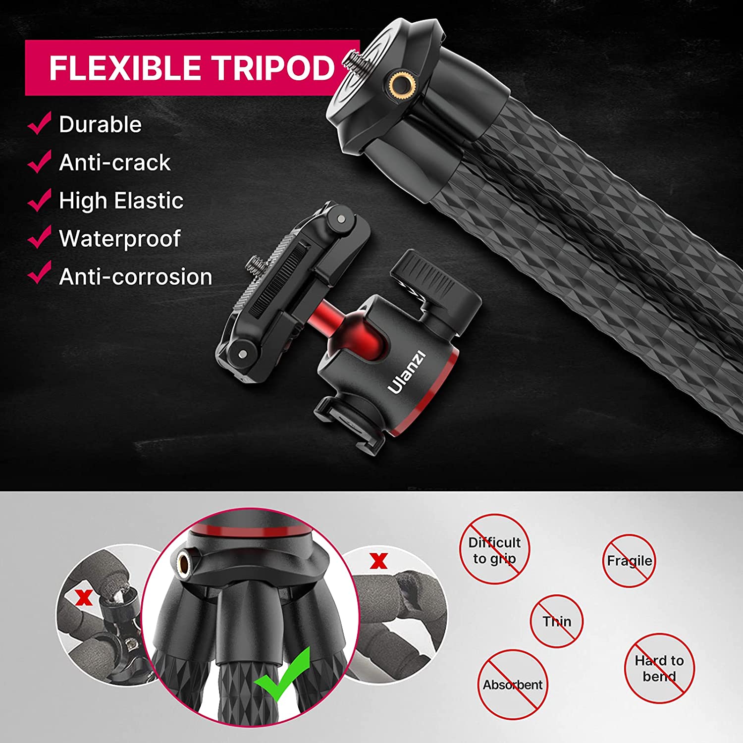 Ulanzi U-SELECT FT-01 là phiên bản chân đế bạch tuộc mới nhất của hãng Ulanzi, được thiết kế bằng chất liệu cao su đàn hồi cao, lõi kim loại nhiều sợi tích hợp cứng cáp