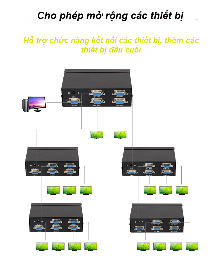 Unitek U8707 - 01 Bộ Chia VGA Unitek 1 ra 4 Hỗ Trợ Độ Phân Giải 19201440 @60Hz Khoảng Cách Truyền Xa Lên Tới 30m - Kèm Nguồn AnZ - Hàng Chính Hãng Hỗ trợ độ phân giải đầu ra 19201440@60Hz Kèm nguồn 9V/500mAh Vỏ kim loại chống nhiễu Nguồn tiêu chuẩn 3C Tích hợp Chip xử lý 74HC4052 Tính năng xếp chồng cho phép mở rông các thiết bị Kích thước: 8,5cmx13cm