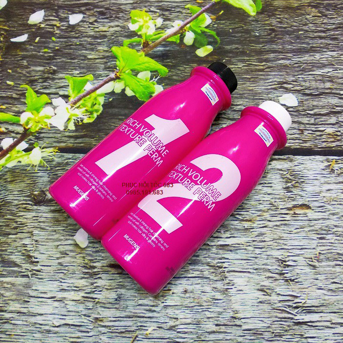 Cách sử dụng: Gội đầu sạch và lau khô( nếu tóc bị tổn thương nên xứ lý phục hồi trước khi làm). 1.  Bôi thuốc số 1 và cuốn tóc vào lô. Thời gian sẽ phải điều chỉnh theo chất tóc và nhiệt độ trông salon.Mugens rich volume texture perm Tóc khỏe, uốn thường: Dùng nhiệt 15 phút/ để tự nhiên 10 phút Tóc yếu, uốn thường: Dùng nhiệt máy  10 phút/ để tự nhiên 10 phút Tóc khỏe, uốn máy: để tự nhiên 15 ~ 20  phút Tóc yếu, uốn máy: Dùng nhiệt máy  5 phút/ để tự nhiên 10 phút1.     Kiểm tra độ xoăn lọn tóc vừa ý, không cần xả nước chỉ dùng khăn bông lau khô hoặc dùng máy sẩy không  dùng nhiệt sẩy khô tóc. 2. Sau dùng thuốc số 1 để nguyên lô không tháo, muốn cho tóc tốt hơn nên xịt một lớp dung dịch cân bằng PH rồi chờ khoáng 3~5 phút.3.      Bôi khoáng 2/3 chai số 2 để thuốc thấm 7 ~ 8 phút, bôi tiếp 1/3 phần thuốc  còn lại, để thuốc thấm 7~8 phút.4.      Kết thúc xả bằng nước ấm và dầu xả.5.      Dùng dưỡng và tạo kiểu.6.      Sau khi hoàn tất công đoạn cần xem các chú ý sử dụng và chăm sóc tóc chuyên nghiệp.  Chú ý: Không nên để sản phẩm ở nhiệt độ cao như ánh nắng mặt trời, gần bóng điện công suất cao…
