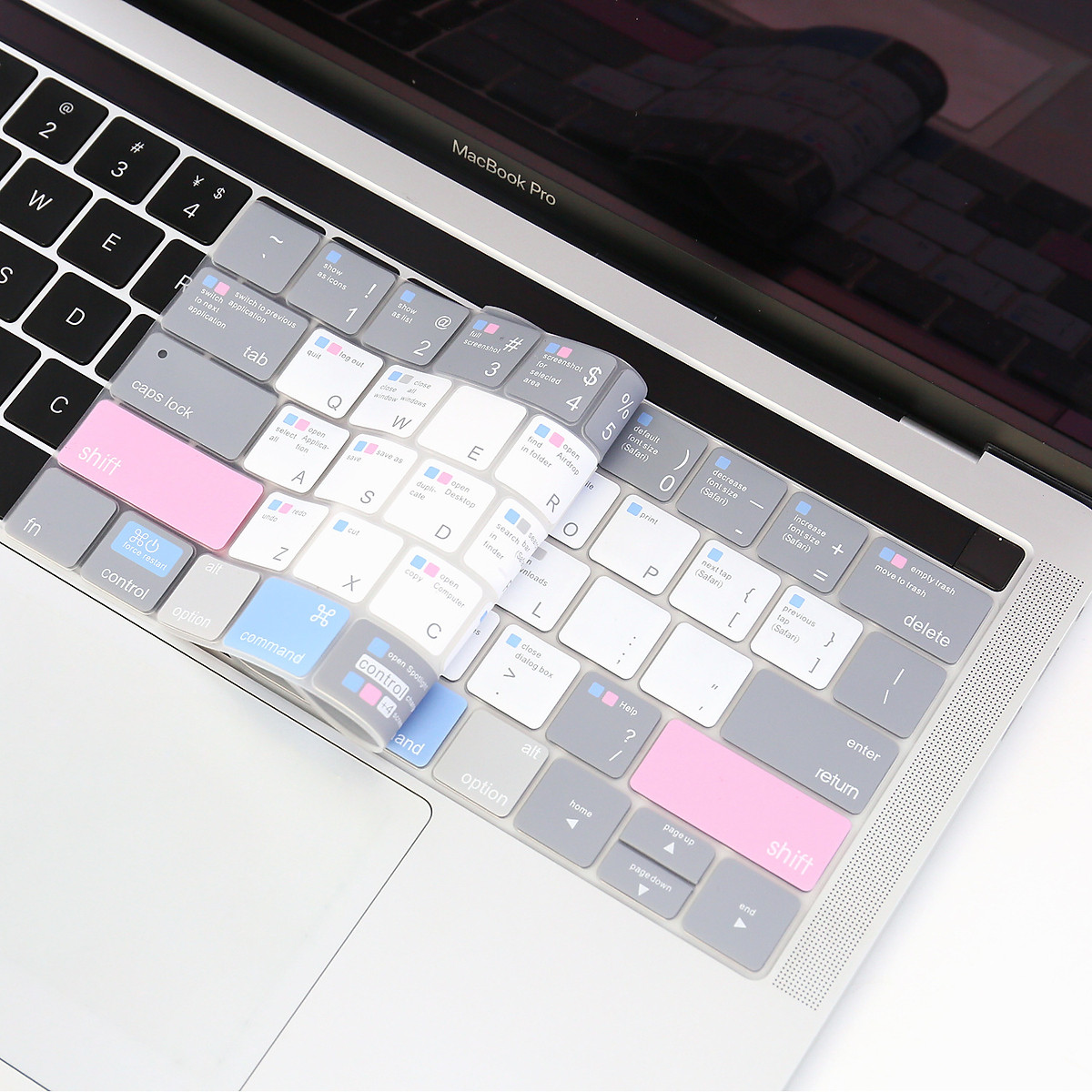 Phủ Phím JRC Shortcut có in hình phím tắt kết hợp màu sắc trẻ trung, với cách bố trí các tone màu tương thích phím tắt giúp bạn làm chủ được hệ điều hành Mac