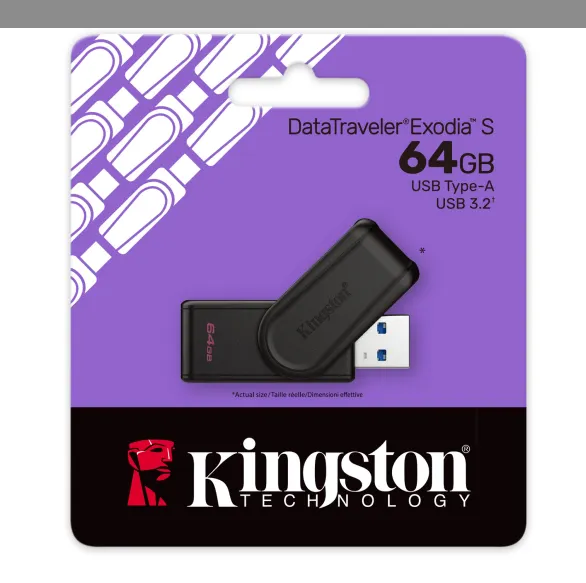 Với dung lượng 64GB, 128GB/256GB USB 3.2 Kingston DataTraveler Exodia S DTXS cho phép người dùng lưu trữ thoải mái các tập tin như tài liệu, ảnh hay video chất lượng cao. Dung lượng này đáp ứng tốt nhu cầu sử dụng phổ thông, từ học sinh đến nhân viên văn phòng.