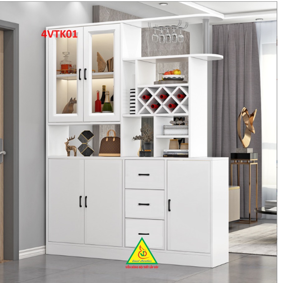 Vách ngăn kiêm tủ rượu trang trí thường có kết cấu và mẫu mã đa dạng. Một số mẫu vách ngăn được thiết kế với các kệ rượu và ngăn để trưng bày chai rượu vang của bạn một cách tinh tế và thuận tiện. Bạn có thể trưng bày các chai rượu với thiết kế đẹp mắt, tạo nên một góc trưng bày thu hút sự chú ý và tạo điểm nhấn cho không gian.