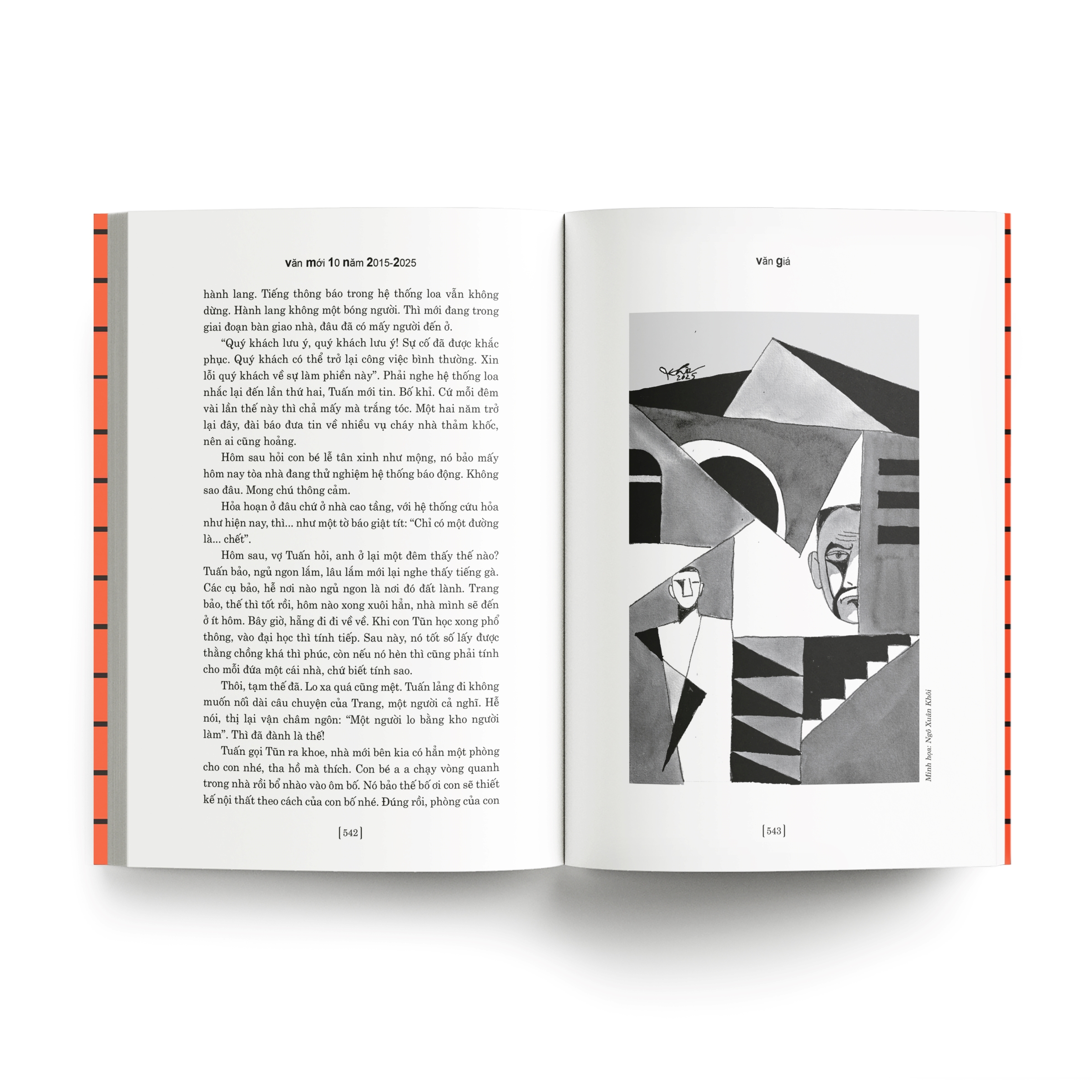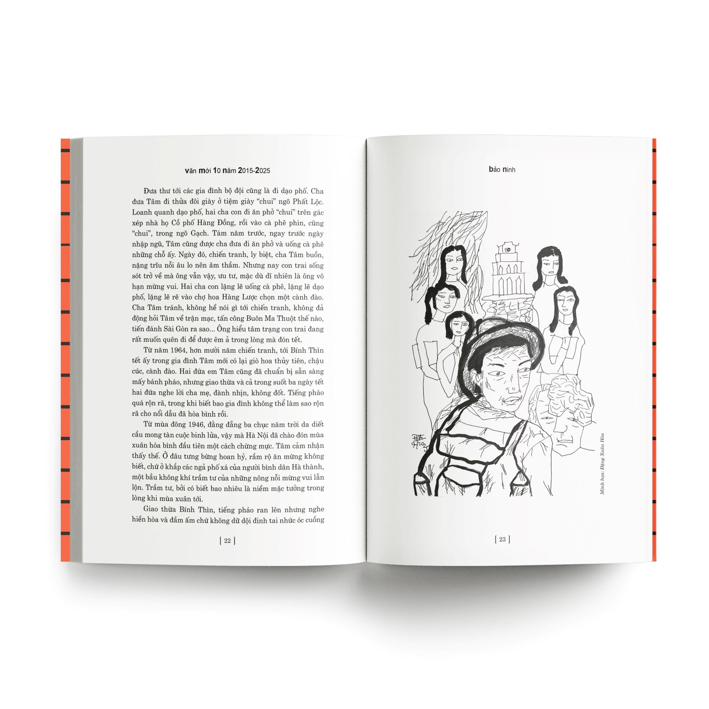 Văn mới 10 năm 2015 - 2025 “Văn Mới 10 năm 2016 - 2025” là tập thứ tư trong bộ tuyển tập Văn Mới được xuất bản định kỳ năm năm một lần. Đây là tập mở rộng, tiếp nối hành trình của Văn Mới sau chặng đường mười lăm năm khép lại vào năm 2015. Đây cũng là ấn bản ghi dấu chặng đường 25 năm của tuyển tập Văn Mới tính từ “Văn mới 5 năm đầu thế kỷ”. Cuốn sách gồm 41 truyện ngắn đặc sắc của các tác giả – bao gồm những tác giả mới và tác giả đang được mến mộ. Tuyển tập quy tụ những nhà văn tiêu biểu của các miền đất nước; các nhà văn trong mọi ngành, mọi giới; nhà văn thuộc nhiều thế hệ, từ độ tuổi hai mươi cho đến cao niên ngót một thế kỷ; có nhà văn trong nước và nhà văn đang sống ở nước ngoài. Độc giả sẽ được gặp lại những nhà văn được yêu mến từ lâu như Ma Văn Kháng, Bảo Ninh, Hồ Anh Thái, Lê Minh Khuê, Nguyễn Thị Thu Huệ… và được gặp gỡ những gương mặt mới như Võ Đăng Khoa, Hiền Trang, Huỳnh Trọng Khang… Các tác phẩm bao quát nhiều vấn đề, từ miền xuôi đến miền ngược và biển đảo, mở rộng biên độ đến những xứ sở bên ngoài biên giới. Tuyển tập cũng chủ trương thu nạp nhiều phong cách văn chương khác nhau, từ giọng điệu nghiêm ngặt cho đến hài hước và bi hài hòa trộn, tự sự truyền thống được đặt bên cạnh những tìm tòi về nghệ thuật và nội dung. Sách cũng chú trọng giới thiệu những phương pháp nghệ thuật văn chương được các nhà văn sử dụng như chủ nghĩa hiện thực, chủ nghĩa hiện thực kỳ ảo, dòng ý thức, dòng cảm xúc... Các tác phẩm được sắp xếp theo thứ tự ABC tên tác giả, bảo đảm chen lẫn giữa các đề tài, xen kẽ các phong cách, và cũng tạo ấn tượng bình đẳng, không phân biệt nhà văn bậc cao niên với thanh niên, nhà văn đã định hình với tác giả mới xuất hiện, nhà văn ở các vùng địa lý… Ấn bản có minh họa của các họa sĩ Đặng Xuân Hòa, Đỗ Hoàng Tường, Hoàng Phượng Vỹ, Ngô Xuân Khôi, Bùi Tiến Tuấn, Kim Duẩn, Đặng Hồng Quân. Những minh họa này góp phần làm giàu thêm trải nghiệm đọc, mở ra không gian hình ảnh song hành cùng câu chữ. Nhờ đó, tuyển tập trở nên sinh động và gợi cảm hứng hơn cho độc giả.