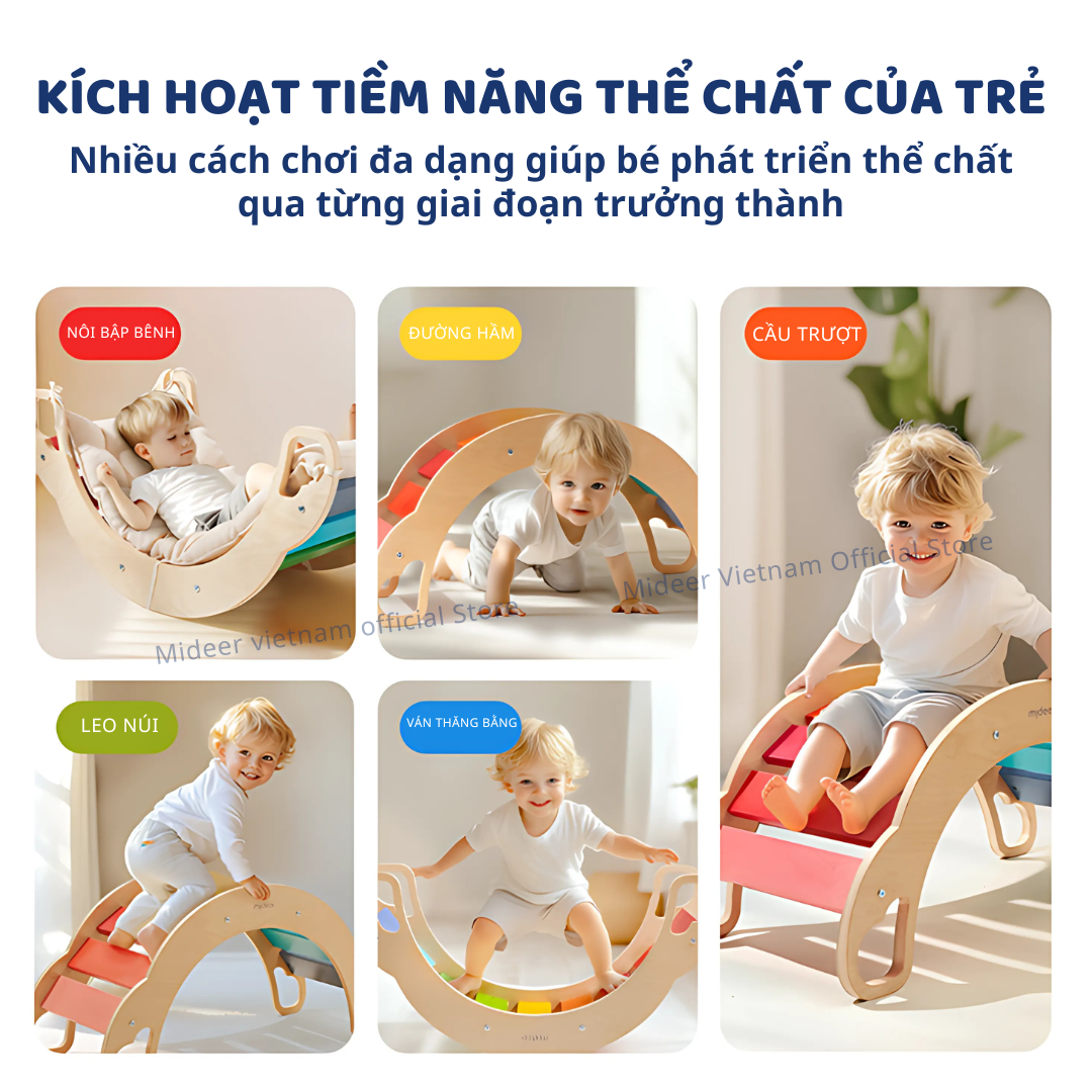CHÀO MỪNG BẠN ĐẾN VỚI MIDEER VIETNAM HÀNG SẴN SHIP HỎA TỐC, BẢO HÀNH CHÍNH HÃNG ————————————— Ván thăng bằng montessori bập bênh vận động cho bé Mideer Rainbow Wooden Climber Ván thăng bằng montessori