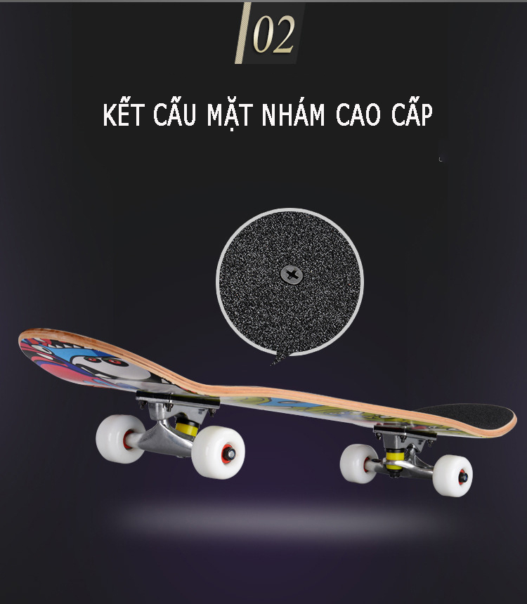 Những đặc điểm nổi bật của ván trượt cỡ lớn mặt nhám đạt chuẩn thi đấu. *Thiết kế trẻ trung, độc đáo. Ván Trượt Mặt Nhám Bánh Cao Su Cỡ Lớn Đại Nam Sport có kiểu