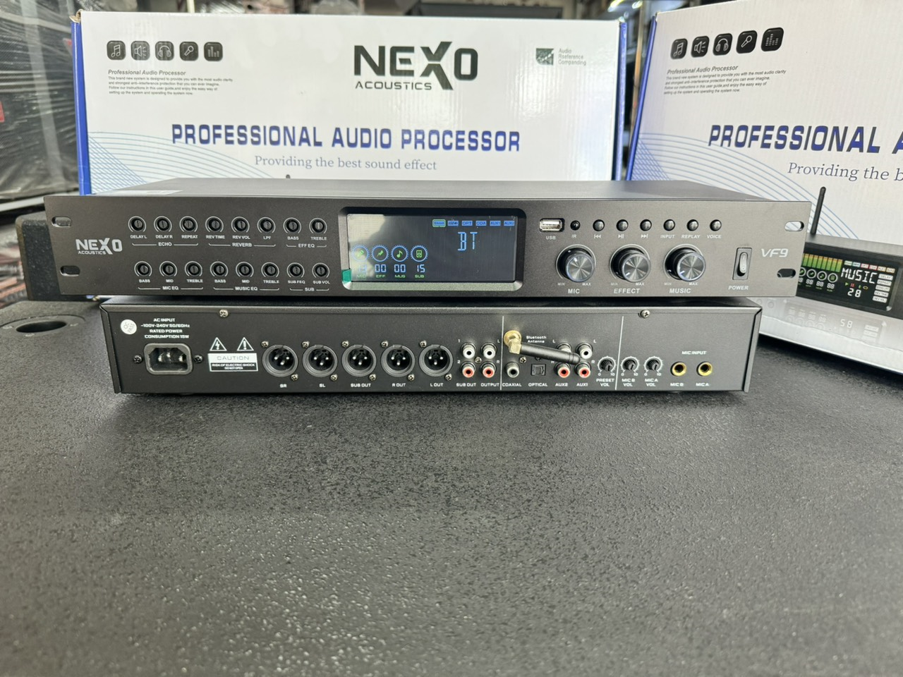 Đáp tuyến tần số: 20Hz – 20KHz Cần chỉnh âm sắc Micro: 3 Bộ tạo hiệu ứng tiếng vang: 2 Ngõ vào Micro: 4 Đường truyền âm thanh tiêu chuẩn Hi Res 2- Vang Cơ lai số NEXO Acounstic VF9 mẫu mới nhất 2024