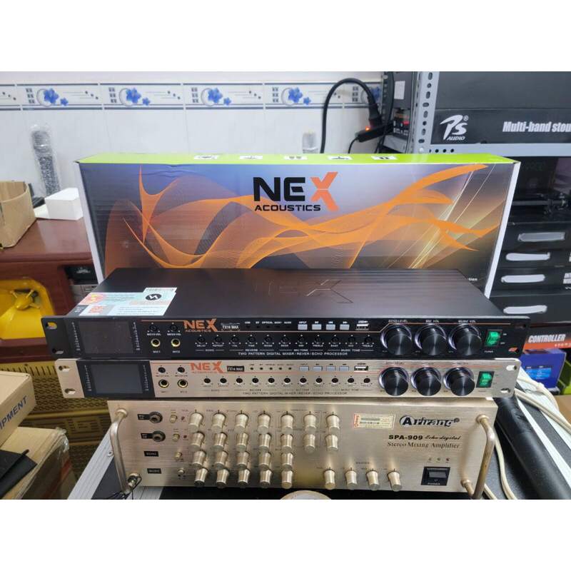 Vang cơ Nex Acoustics FX14 Max Với thiết kế đẳng cấp và tinh tế cùng nhiều tính năng vượt trội, khả năng kết nối đa dạng cùng nâng cấp về phần cứng hứa hẹn sẽ mang lại chất âm không thua gì vang số cho hệ thống âm thanh chuyên nghiệp mang lại trải nghiệm giải trí đỉnh cao cho người sử dụng Vang cơ Nex Acoustics FX14 Max là model mới của hãng Nex Acoustic với thay đổi về phần cứng mạnh mẽ , thêm hiệu ứng tiếng vang REVERD chuyên nghiệp giúp giọng hát nhẹ và trung thực,đồng thời sử dụng Chip số DSP siêu mạnh giúp máy vận hành mượt mà như vang số nhưng sử dụng rất đơn giản như một chiếc vang cơ Mặt trước của vang cơ Nex Acoustics FX14 Max là các nút chức năng quan trọng như nút chỉnh echo,reverd, mic tone và music tone, tích hợp các khe cắm míc và đèn tín hiệu kết nối. Màn hình hiển thị màu TFT 2,4 inch mang lại trải nghiệm sử dụng tuyệt vời giúp người dùng theo dõi và điều chỉnh các thông số một cách thuận tiện. Mặt sau của vang cơ Nex Acoustics FX14 Max chứa đựng nhiều kết nối và tính năng tiện ích. Cổng kết nối USB và nút điều chỉnh nhạc tới-lùi, cổng kết nối nguồn. Ngoài ra là các cổng kết nối loa sub, loa center, đầu vào micro và cổng kết nối với các thiết bị âm thanh khác ở mặt sau. Núm vặn trên vang cơ Nex Acoustics FX14Max được thiết kế chặt tay và mượt mà tạo ra trải nghiệm điều chỉnh âm thanh độc đáo. Mọi thao tác đều trở nên dễ dàng và linh hoạt giúp người sử dụng tận hưởng quá trình sáng tạo âm nhạc của mình một cách thoải mái. Với 3 nhóm micro và 4 ngõ vào, vang cơ Nex Acoustics FX14 cho phép bạn kết hợp nhiều micro cùng lúc tạo ra không khí karaoke sôi động ngay tại nhà. Điều đặc biệt là chức năng chống hú (feedback) với công nghệ dịch tần số, giúp giảm sự hú rít cho Micro mà không làm ảnh hưởng đến chất âm tự nhiên. Chức năng điều chỉnh âm sắc Điều chỉnh âm sắc (Bass – Middle – Treble) riêng biệt cho Mic, Echo, Music là một tính năng nổi bật, mang đến khả năng tùy chỉnh âm thanh theo ý muốn của người dùng. Vang cơ Nex Acoustics FX14 còn sở hữu 2 bộ tạo hiệu ứng tiếng vang (Echo và REVERD) tăng cường chất âm làm cho âm thanh trở nên dày và sống động hơn. Hỗ trợ 4 ngõ nhạc vào Với khả năng kết nối linh hoạt, sản phẩm hỗ trợ 4 luồng nhạc vào từ nhiều nguồn khác nhau như Bluetooth, Cổng quang – Optical, Cổng RCA, và cổng USB. Chế độ Bluetooth giúp kết nối dễ dàng với các thiết bị như smartphone, máy tính bảng.   Cổng quang – Optical hỗ trợ kết nối với các thiết bị cao cấp, đồng thời đảm bảo âm thanh sinh động và tinh tế hơn. Cổng RCA cho phép truyền tải tín hiệu âm thanh và hình ảnh thông qua giắc hoa sen. Cổng USB cho phép bạn thưởng thức đa dạng thể loại nhạc từ thẻ USB, mở rộng khả năng lựa chọn âm nhạc của bạn. Thông số kỹ thuật: Hãng NEX Acoustic Loại Vang Vang cơ Tính năng Chống hú Tần số đáp tuyến 20Hz - 20kHz Màn hình hiển thị TFT 2.4 Kết nối bluetooth Cổng kết nối RCA (jac bông sen), Cổng quang (Optical) Phân khúc Cao Cấp Thương Hiệu USA