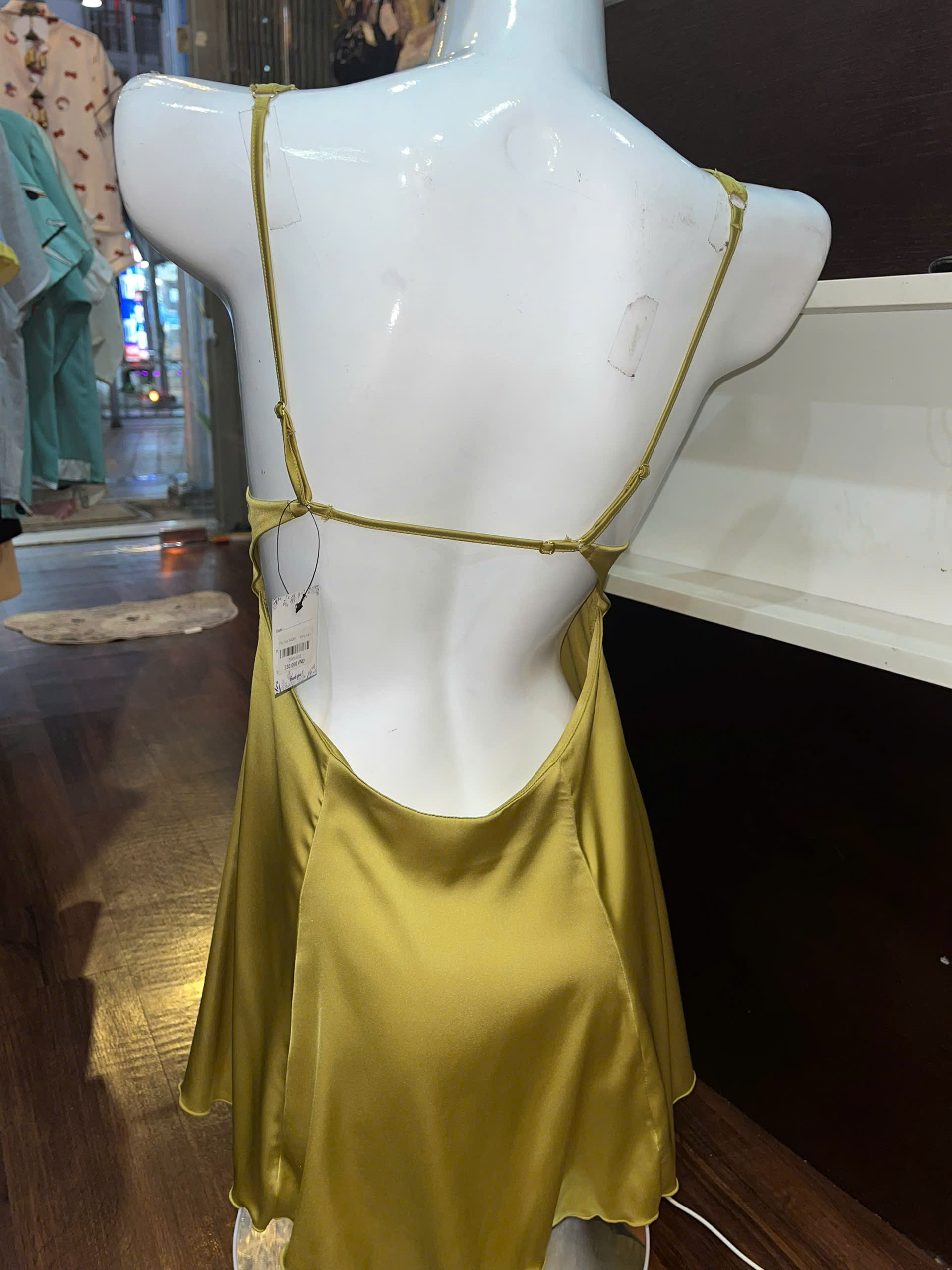 Mua tại TiktokThương hiệu: Sanny House Tên sản phẩm: Váy ngủ Chất liệu: lụa cao cấp mềm mịn, co giãn, thấm hút tốt Kiểu dáng: gợi cảm, trẻ trung, hiện đại Màu: vàng Size: dưới 56kg LƯU Ý: