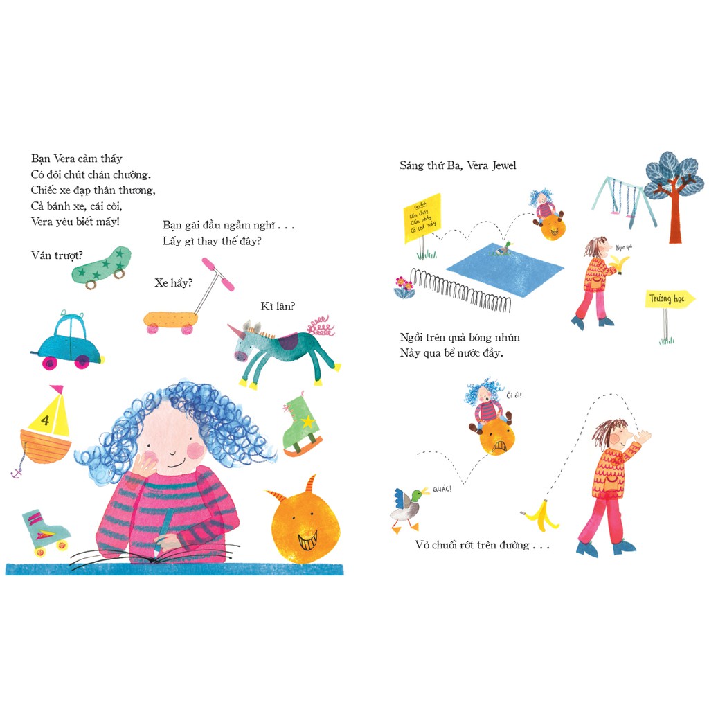 Sách Tranh Song Ngữ - Vera Jewel Đi Học Muộn - Đến Trường Đúng Giờ Sao Lại Khó Vậy Nhỉ? Vera là một cô bé nhỏ nhắn có mái tóc xoăn màu xanh nước biển,