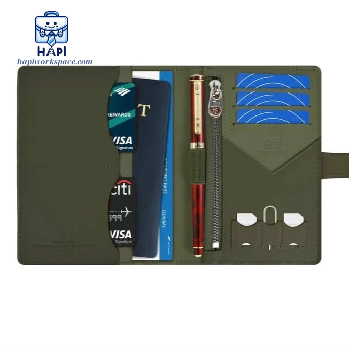Thiết kế da, có nhiều ngăn để bạn có thể đựng giấy tờ, thẻ, vé máy bay vô cùng tiện dụng