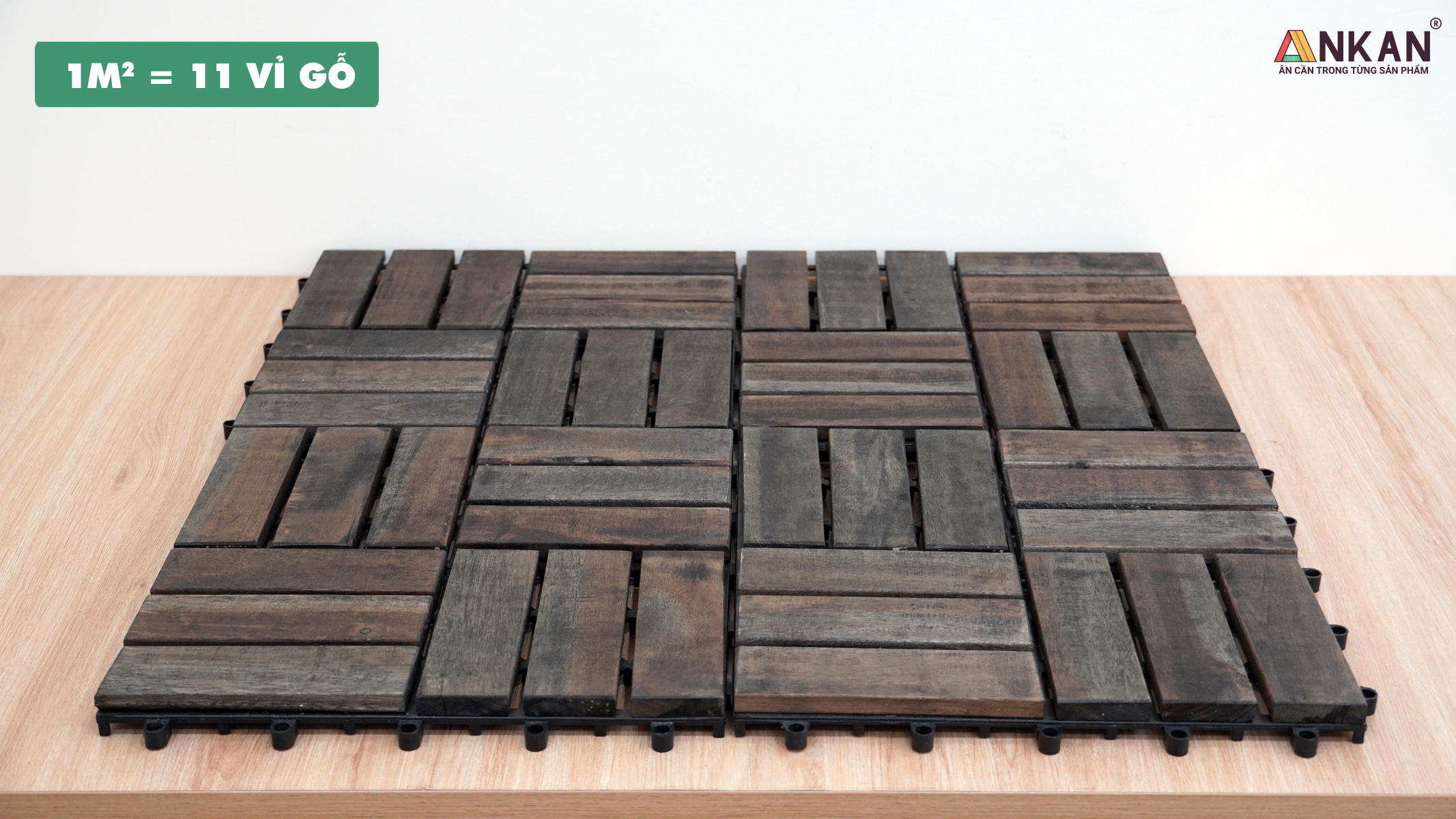 Vỉ Gỗ Lót Sàn Ban Công Thương Hiệu ANKAN Gu Màu Đen 12 Nan là một trong những sản phẩm lót sàn ban công phổ biến hiện nay. Khu vực thường sử dụng sản phẩm