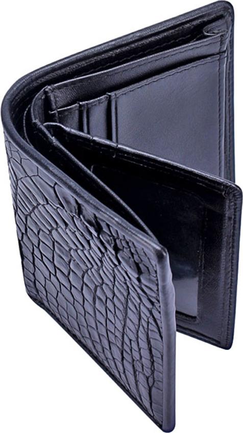 Ví/Bóp nam Huy Hoàng da bò vân cá sấu kiểu đứng màu đen 2120