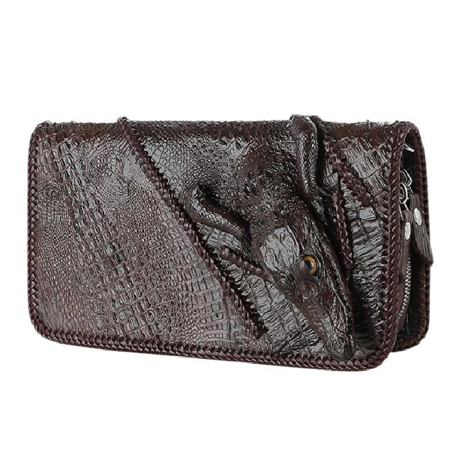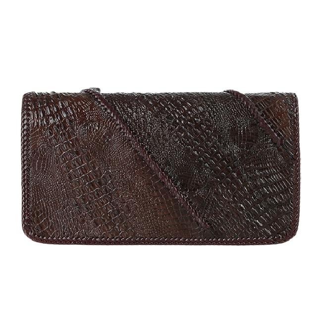 ✨Ví nữ da cá sấu Huy Hoàng nhiều ngăn đầu cá sấu đan viền màu nâu đất HC3731