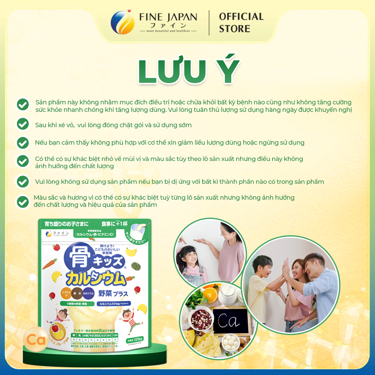 [Vị trái cây tổng hợp] Bột Canxi cá tuyết Bone's Calcium for Kids Vegetable Plus FINE JAPAN bổ sung Canxi & rau củ quả gói 128g Bone's Calcium for Kids Vegetable Plus là sản phẩm