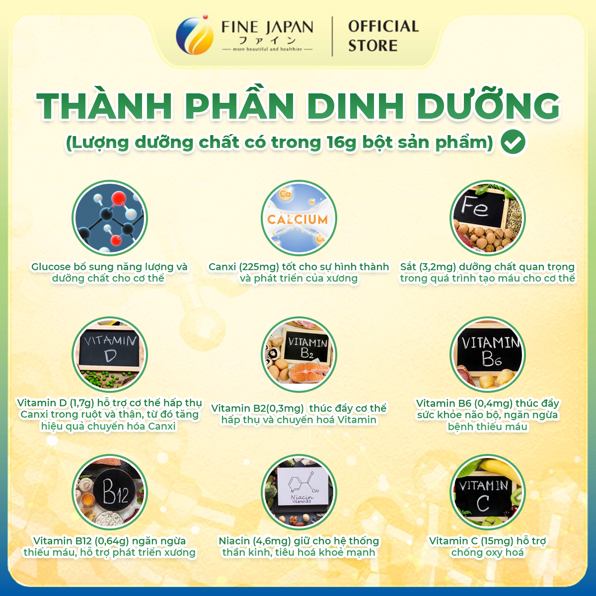 (Lượng dưỡng chất có trong 16g bột sản phẩm)