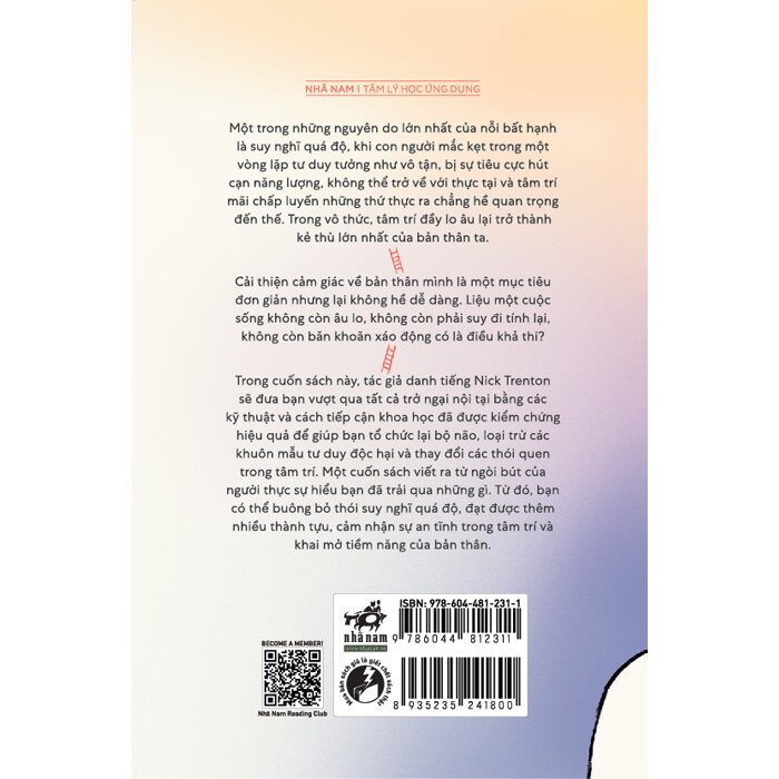 Trong cuốn sách này, tác giả danh tiếng Nick Trenton sẽ đưa bạn vượt qua tất cả trở ngại nội tại bằng các kỹ thuật và cách tiếp cận khoa học đã được kiểm chứng hiệu quả để giúp bạn tổ chức lại bộ não. Loại trừ các khuôn mẫu tư duy độc hại và thay đổi cá thói quen trong tâm trí. Một cuốn sách viết ra từ ngòi bút của người thực sự hiểu bạn đã trải qua những gì. Từ đó, bạn có thể buông bỏ thói suy nghĩ quá độ, đạt được thêm nhiều thành tựu, cảm nhận sự an tĩnh trong tâm trí và khai mở tiềm năng của bản thân.