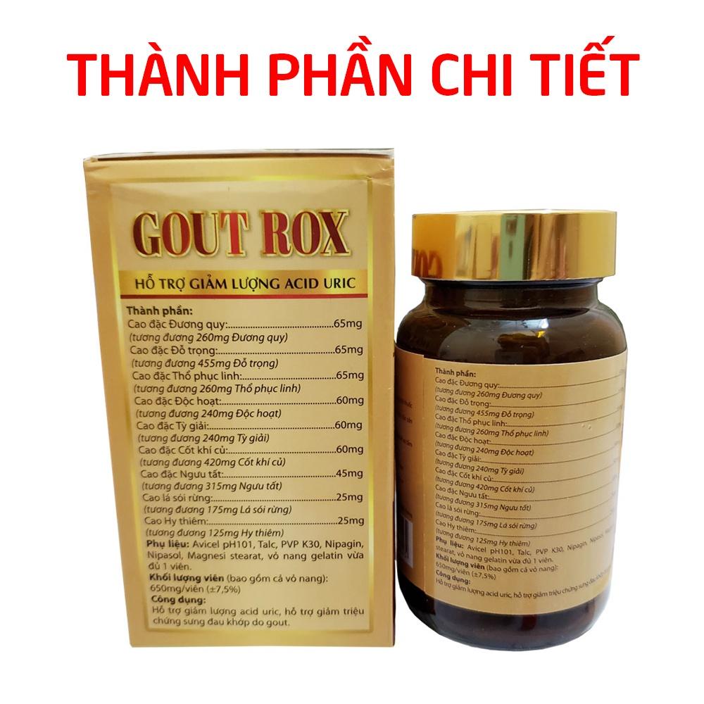 - GOUT ROX được bào chế theo phương pháp đông y từ nhiều loại thảo dược quý, mang đến hiệu quả tuyệt vời cho người bị gút (gout)