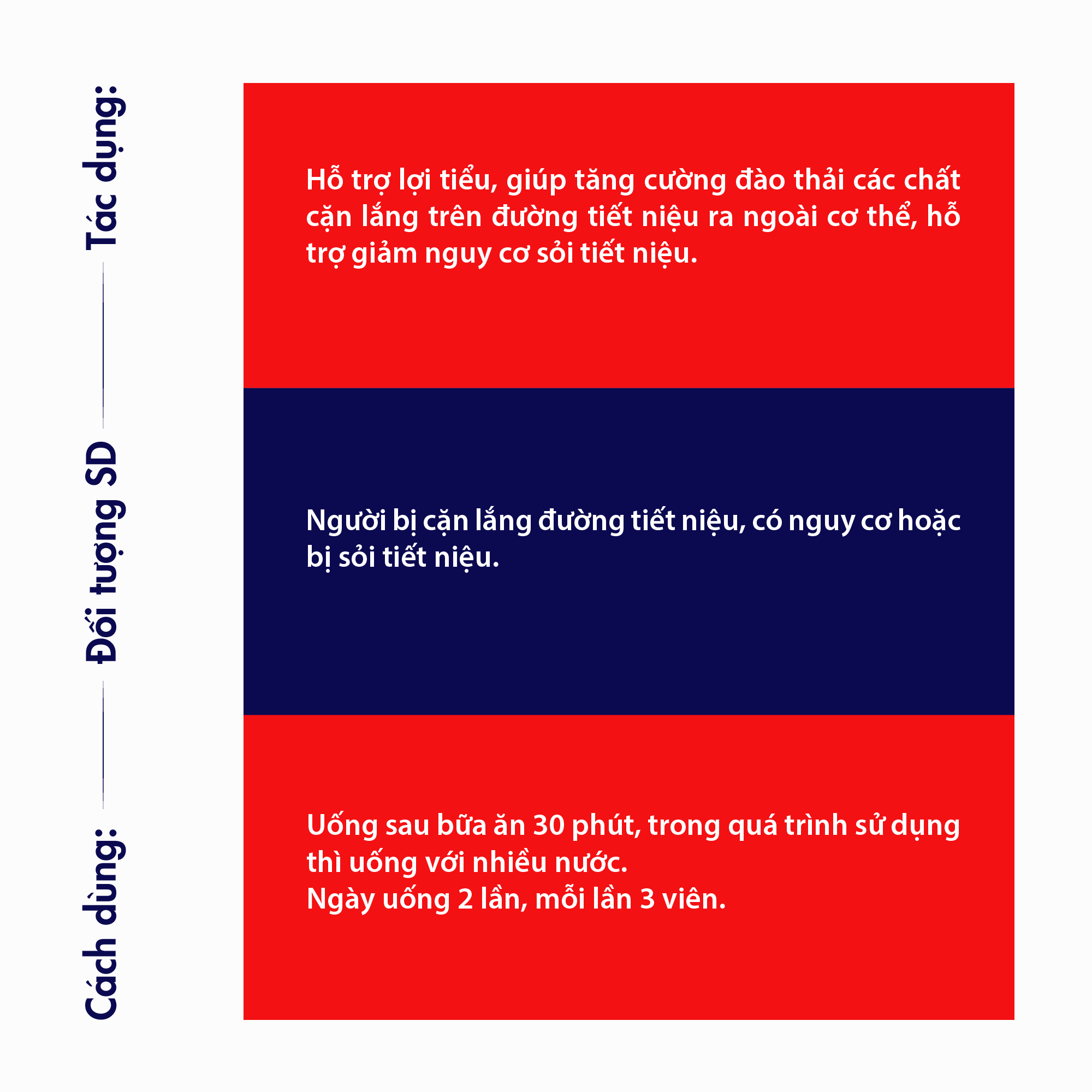 - Phòng ngừa sỏi tái phát hoặc hỗ trợ sau mổ lấy sỏi, tán sỏi ngoài cơ thể.