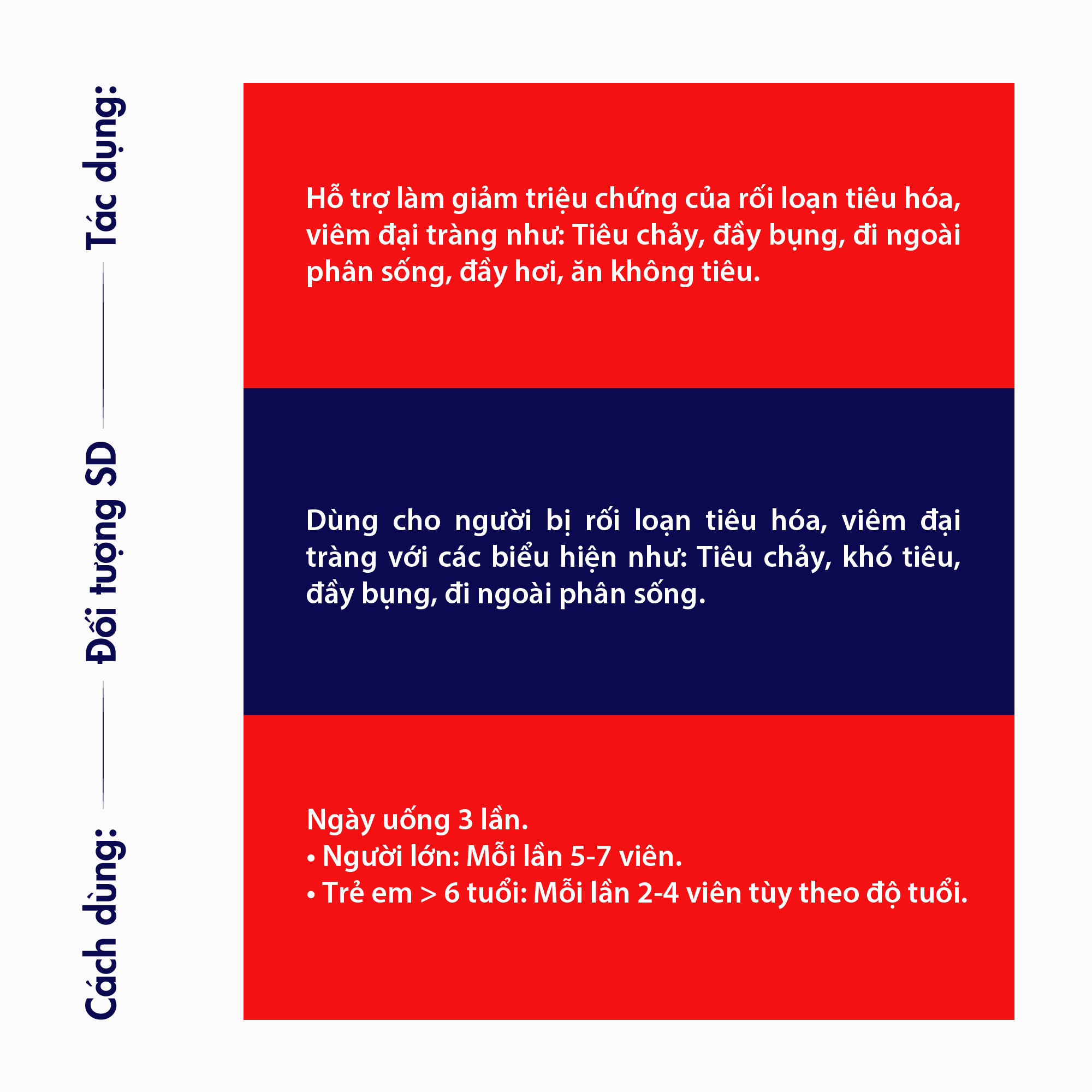 CÔNG DỤNG CỦA ĐẠI TRÀNG ROX - Hỗ trợ giảm rối loạn tiêu hóa do viêm đại tràng. - Giảm các triệu chứng do đại tràng co thắt. - Giảm các triệu chứng: tiêu chảy,