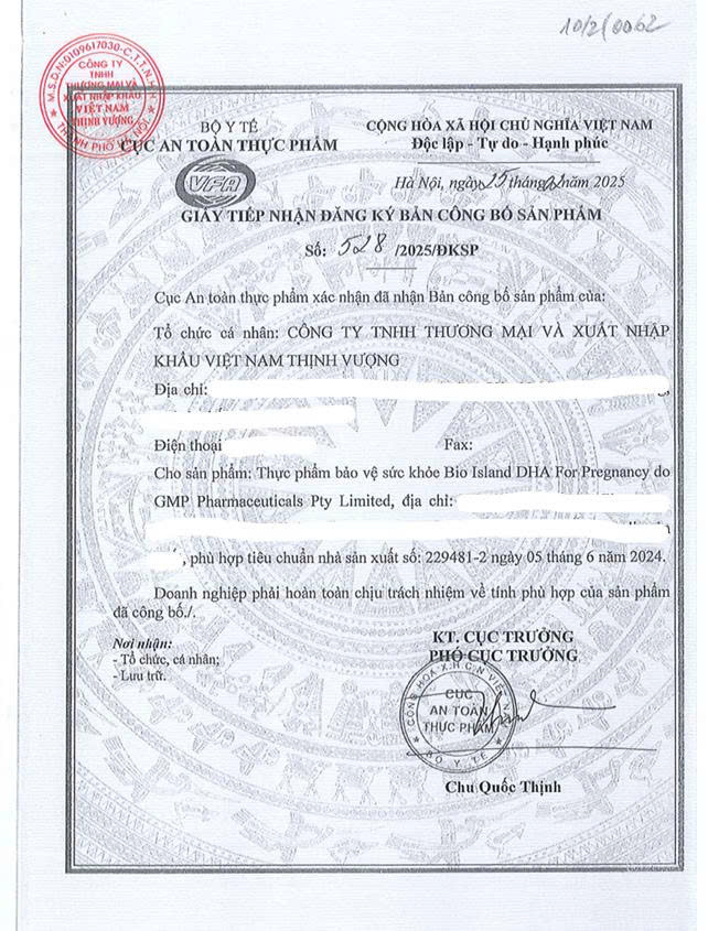 Mua tại TiktokThành phần Cho 1 viên nang mềm: Dầu giàu Axit docosahexaenoic (DHA) có nguồn gốc từ tảo schizochytrium 525 mg (tương đương với axit docosahexaenoic (DHA)) 210 mg Phụ liệu: Chất làm ẩm INS422 (glycerol), nước tinh khiết, vỏ nang (gelatin) Công Dụng Hỗ trợ cải thiện sức khỏe cho phụ nữ có thai và đang cho con bú. Hướng dẫn sử dụng Liều lượng sử dụng: Phụ nữ đang cố gắng thụ thai và phụ nữ mang thai từ 0-10 tuần tuổi uống 1 viên mỗi ngày; Phụ nữ mang thai từ 10-36 tuần trở lên và bà mẹ đang cho con bú uống 2-3 viên mỗi ngày hoặc theo chỉ dẫn của chuyên gia chăm sóc sức khỏe của bạn. Cách sử dụng: Uống cùng bữa ăn. Lưu ý