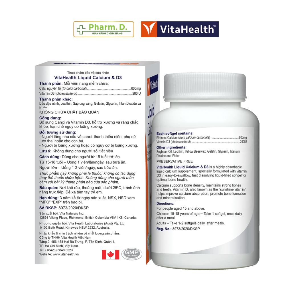 - Hỗ trợ hạn chế nguy cơ loãng xương. THÀNH PHẦN Liquid Calcium & D3: