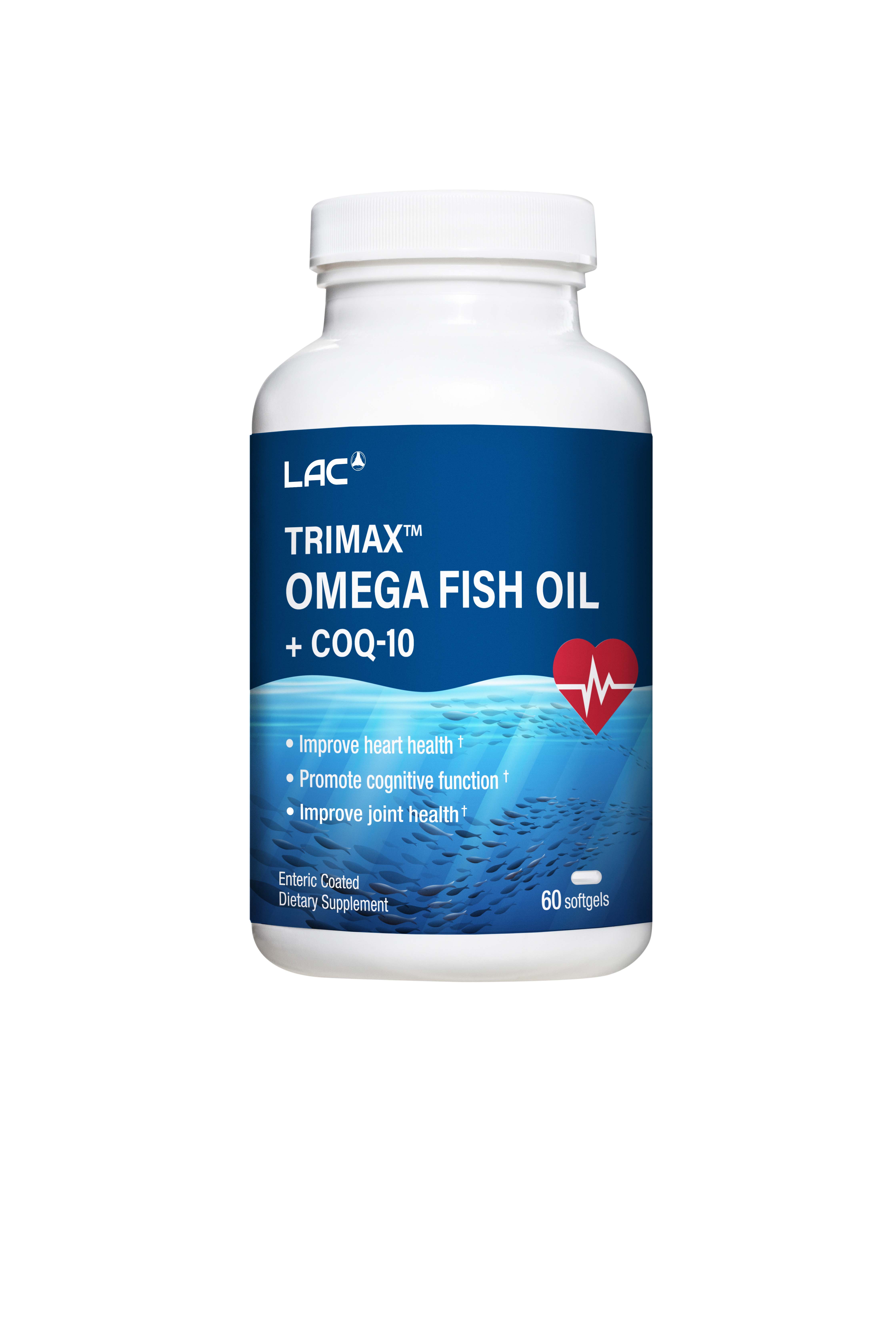 VIÊN UỐNG DẦU CÁ BỔ SUNG OMEGA HỖ TRỢ TIM MẠCH LAC TRIMAX OMEGA FISH OIL + COQ-10 (60 VIÊN) chứa hàm lượng axit béo Omega-3 gấp 3 lần so với dầu cá thông thường