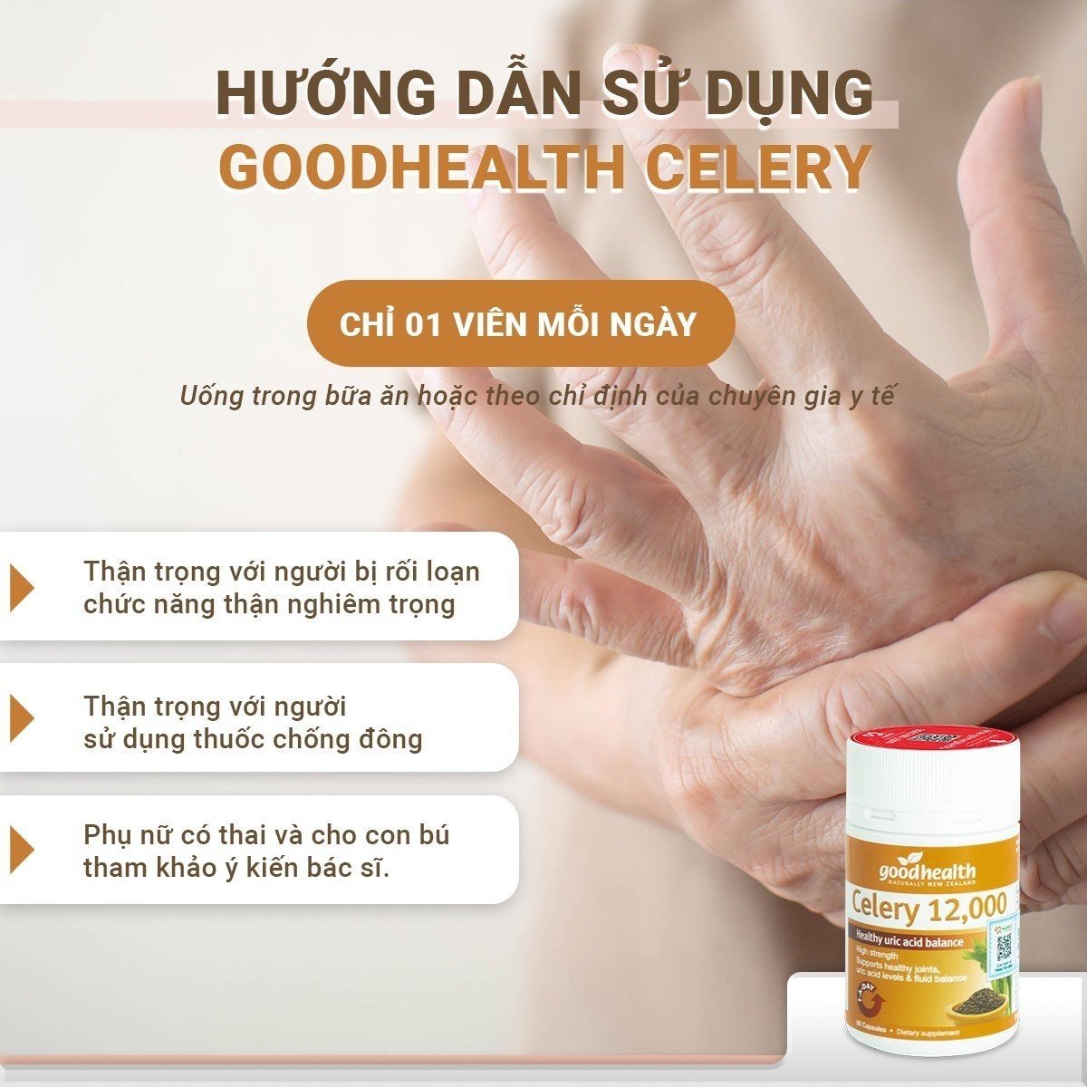 - THÀNH PHẦN Chiết xuất thảo dược sấy khô Apium graveolens (Hạt cần tây): 1200mg