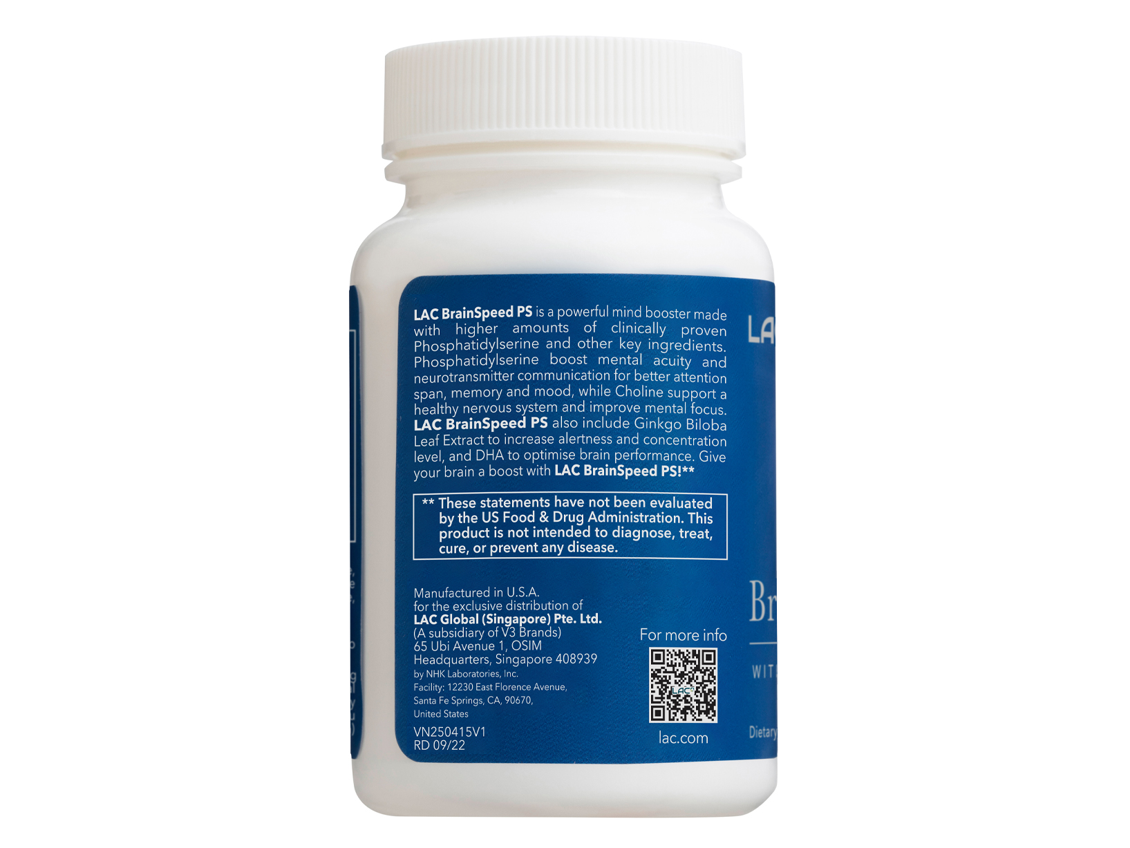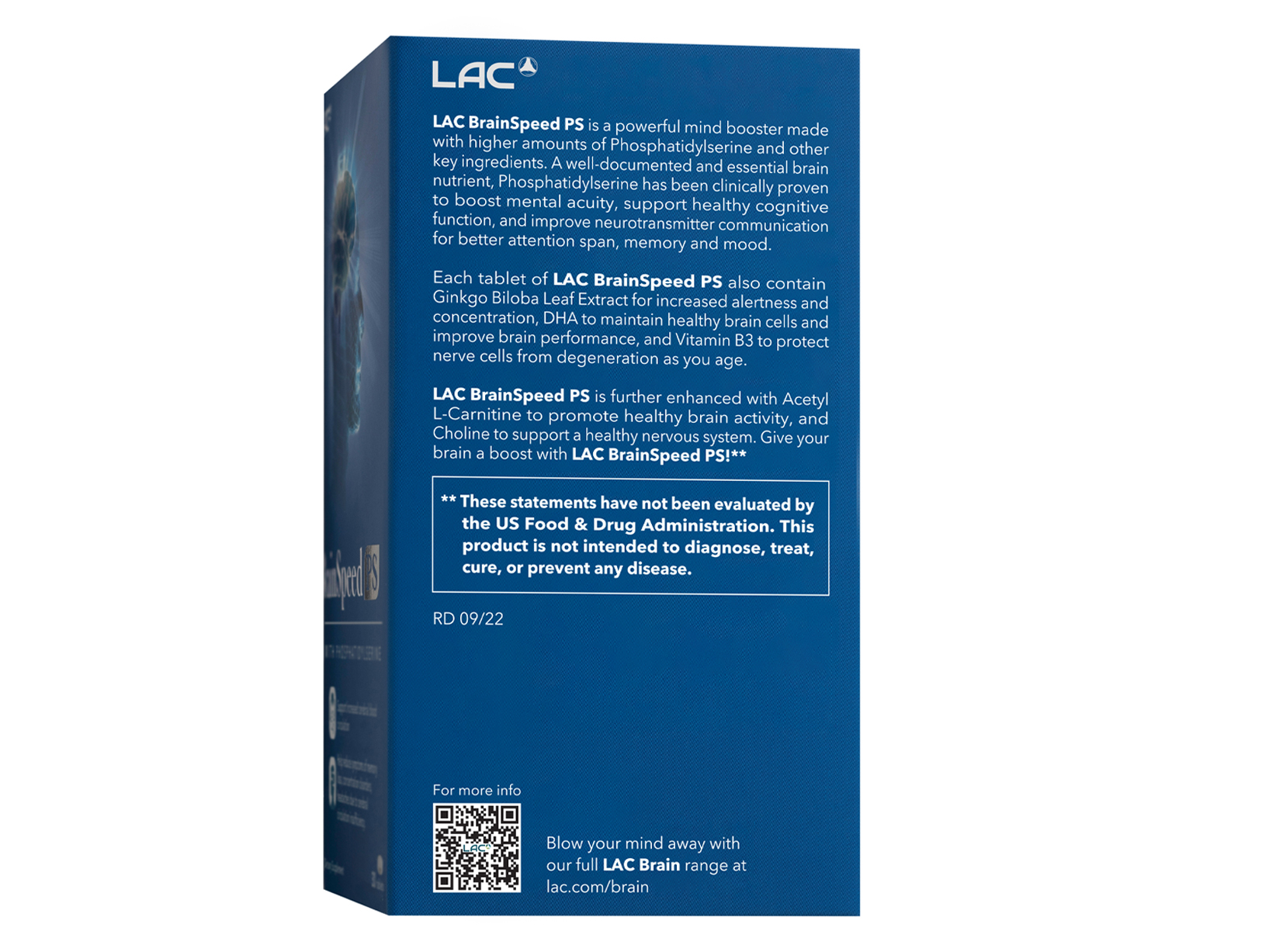 VIÊN UỐNG HỖ TRỢ NÃO BỘ LAC BRAINSPEED PS (30 VIÊN) với công thức tăng cường trí lực tiên tiến, cùng hàm lượng Phosphatidylserine cao hơn và bổ sung Choline – giúp cải thiện trí
